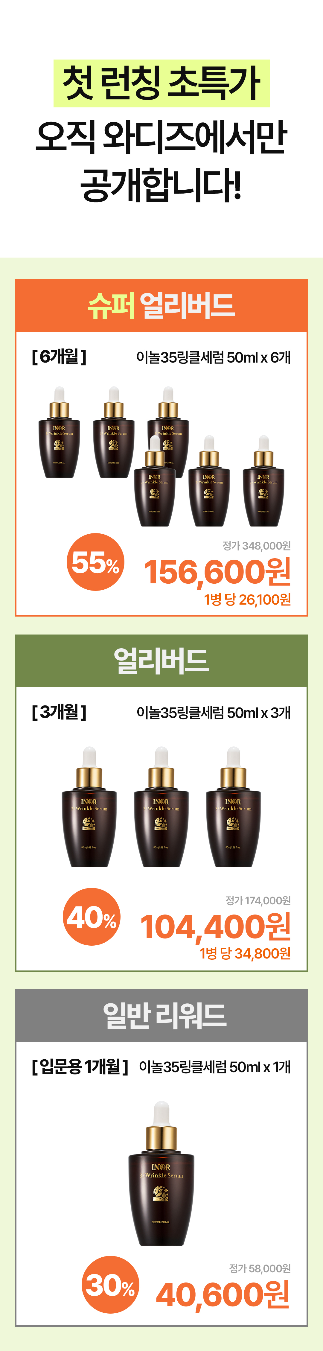 저희는 화장품 사업의 첫 출시 제품인 “이놀35링클세럼”을 와디즈에서 소개하게 되어 매우 기쁩니다.