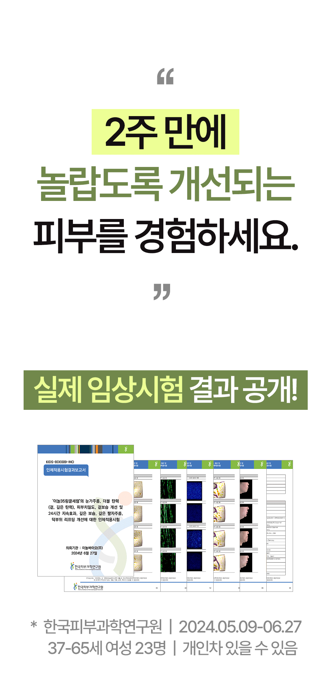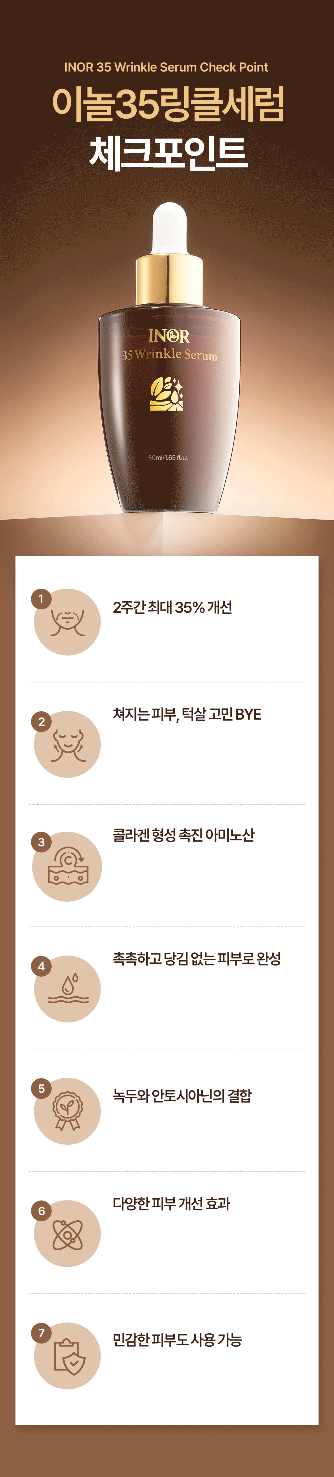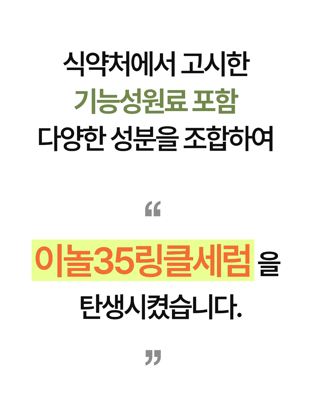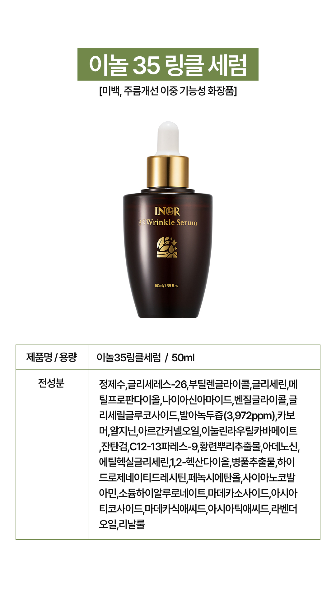 이놀35링클세럼은 우리의 자부심이자, 그 성능에 있어 큰 자신감을 가지고 있습니다.