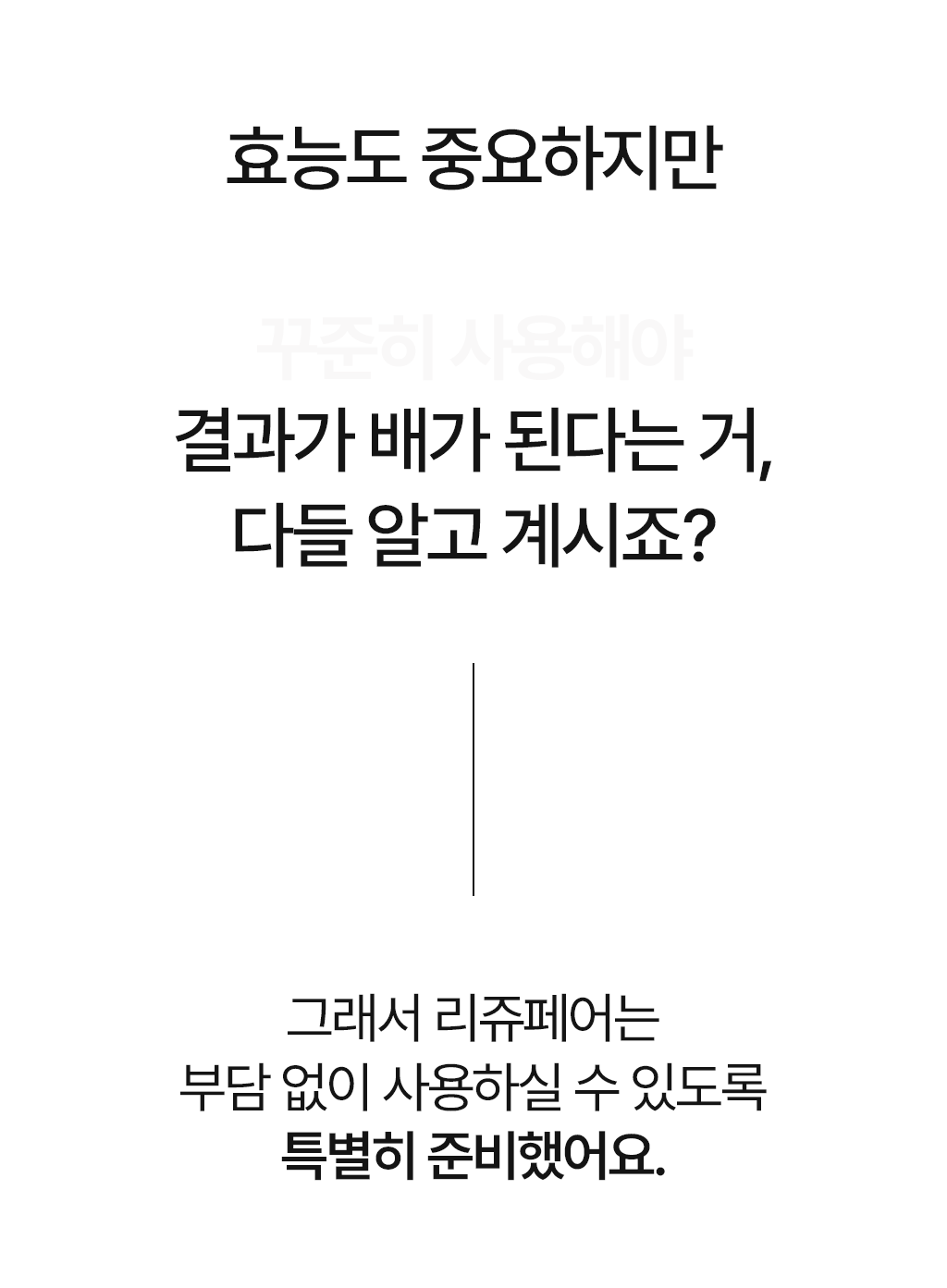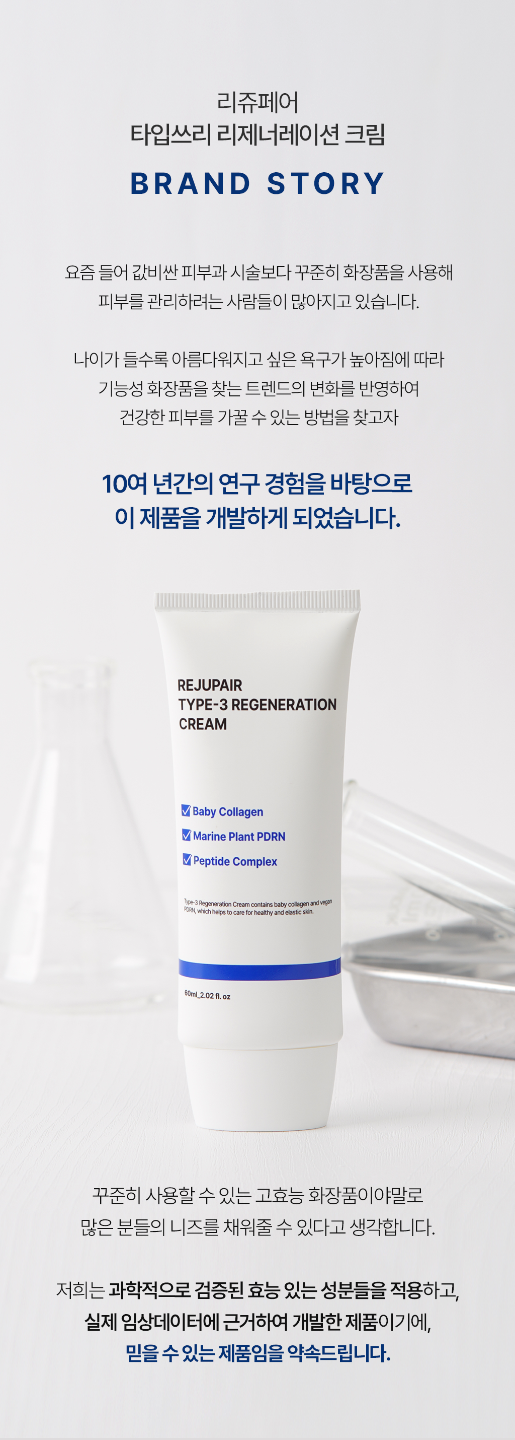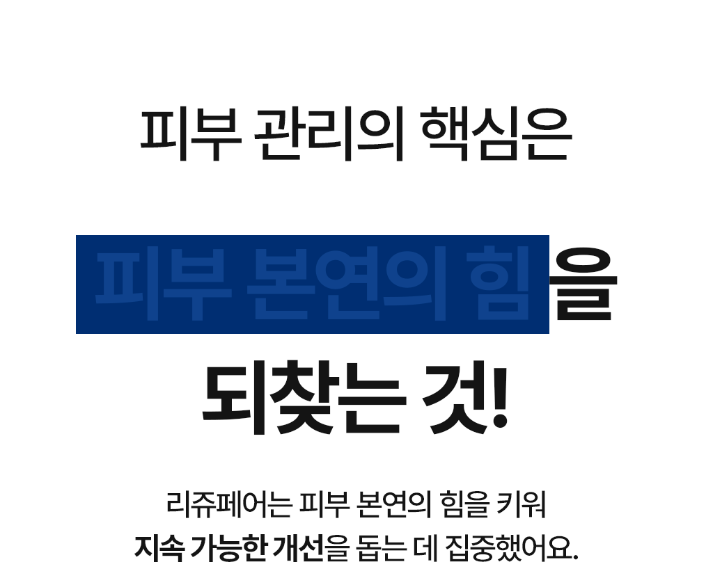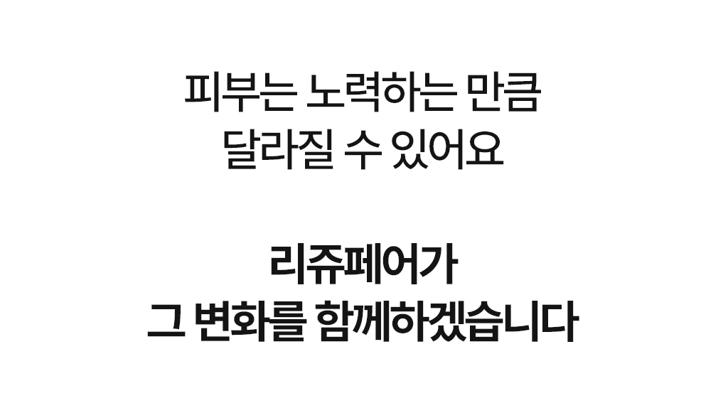 연구원 생활을 통해 축적한 기술과 경험을 바탕으로, 각 효능에 적합한 최적의 성분과 제형을 개발하는 데 전념하고 있기에, 리쥬페어는 과학적으로 신뢰할 수 있는 코스메슈티컬 브랜드임을 자부합니다.