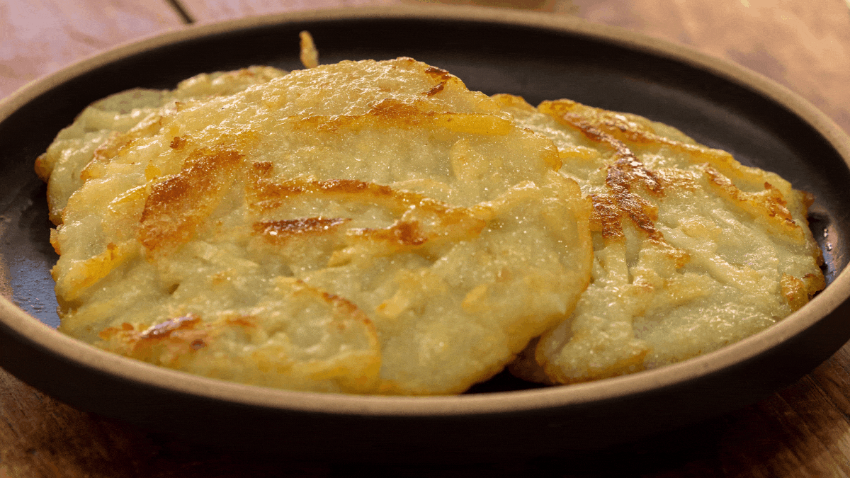 坚持传统的刨丝制造工艺,保留纤维,提升口感, 正在制作土豆丸子和土豆煎饼。