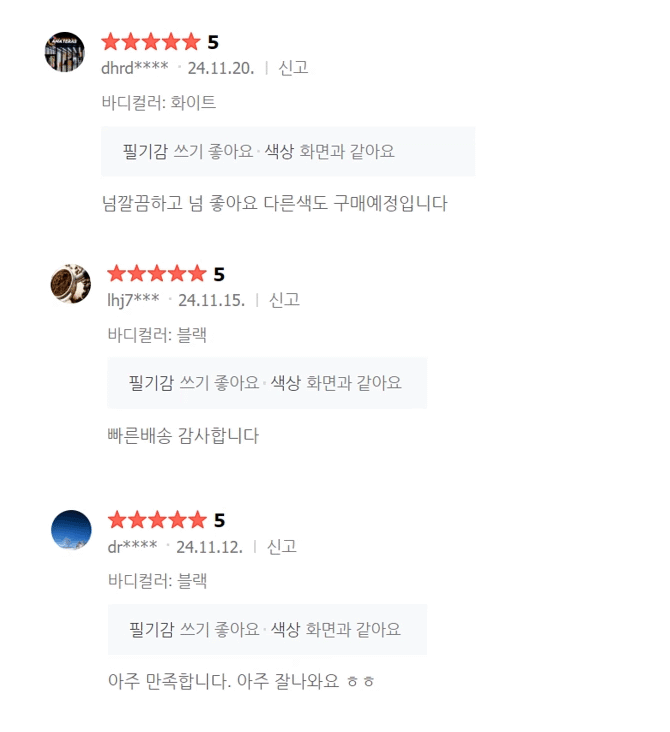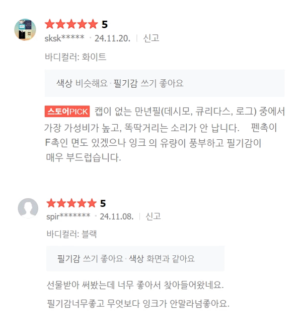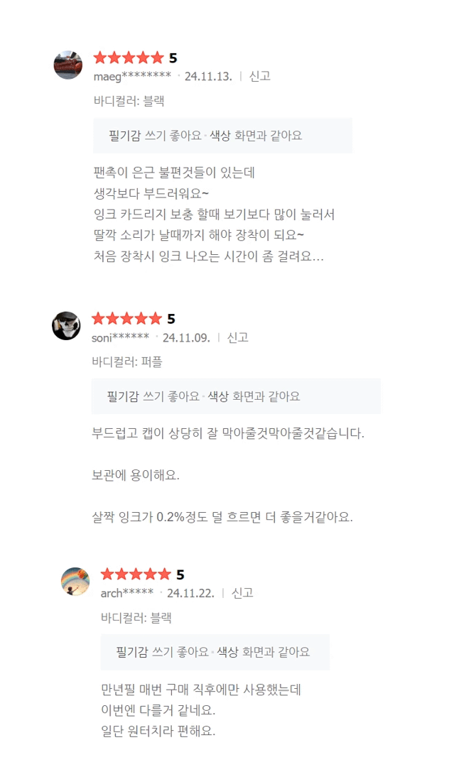 - 볼펜 보다 부드럽게 써지고 끊김이 없습니다.