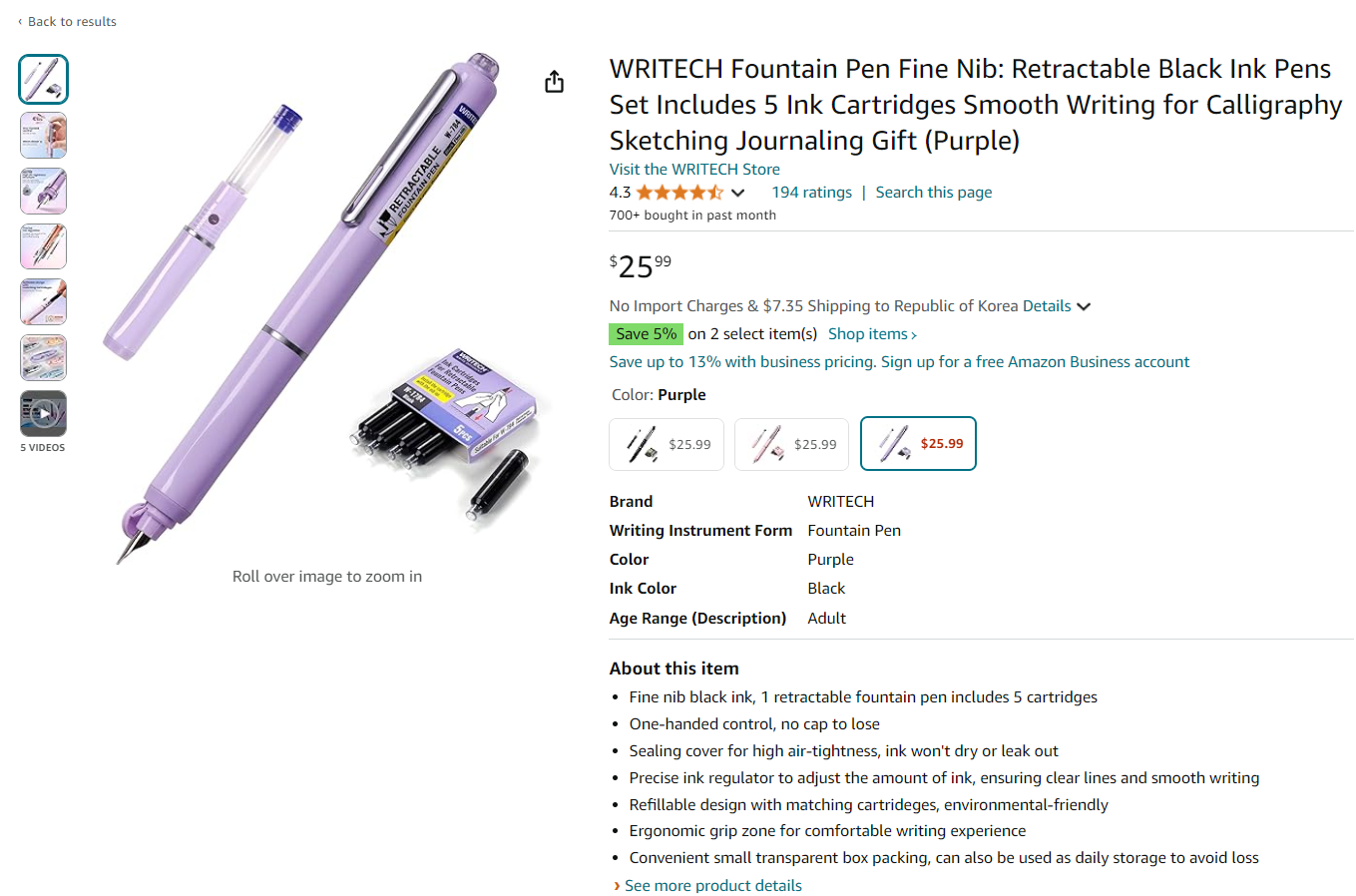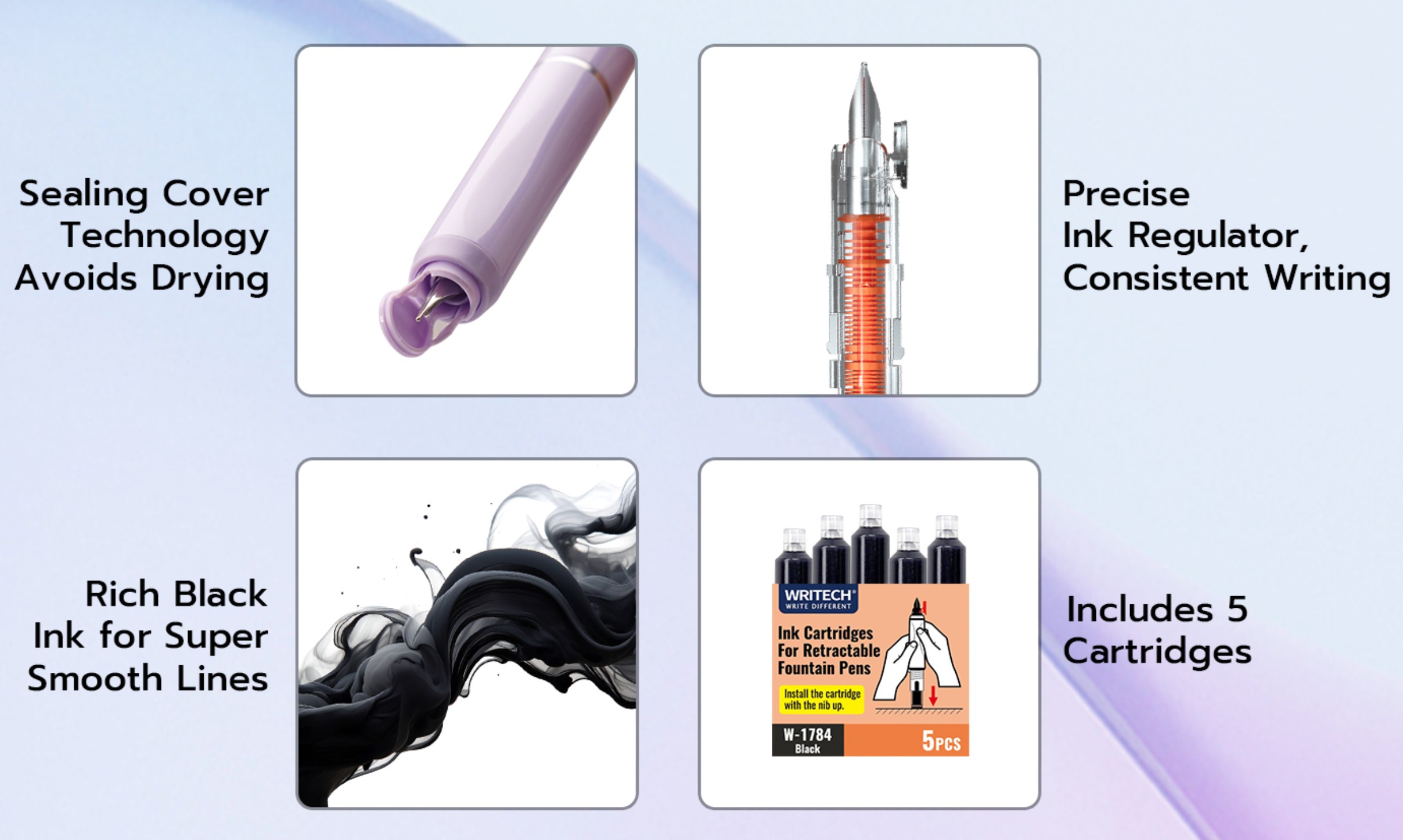 - 리필 카트리지가 5개 포함되어 있습니다.