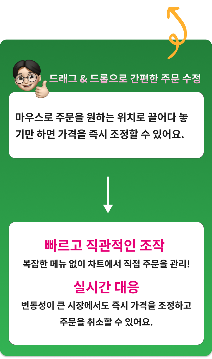 풀스크린 트레이딩 화면으로 편하고 빠르게!