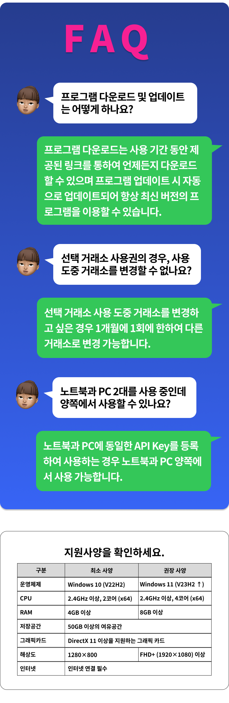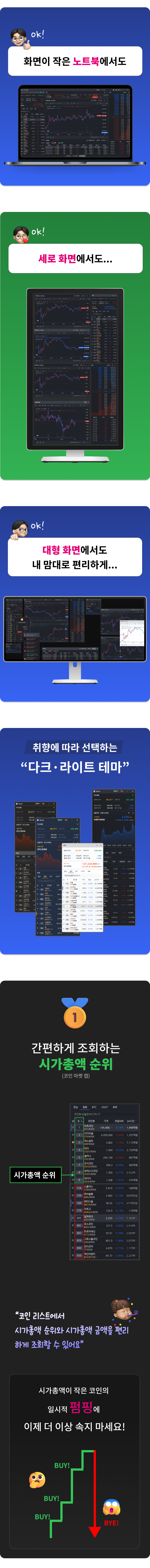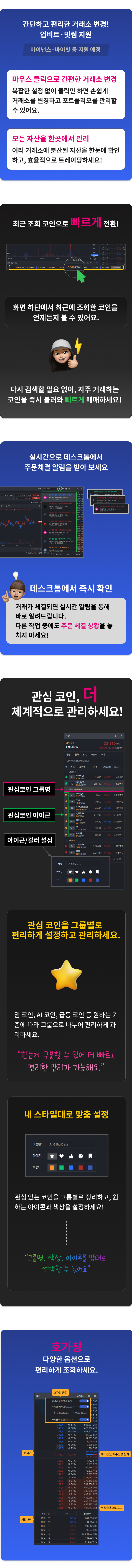 코인 트레이딩에 진심인 전문 프로 트레이더님들은 물론 코인에 입문하는 분들까지 편리하고 쉽게 매매할 수 있고 투자에 도움이 되고자 PC용 코인거래 프로그램을 개발하고 있습니다.