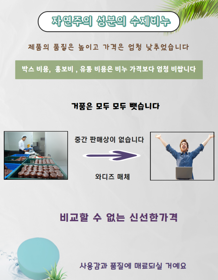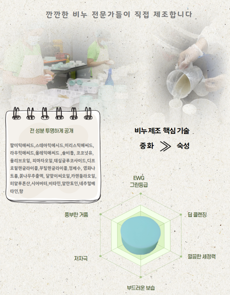 깐깐한 비누 전문가가 프리미엄 식물성 오일로 제조한 수제비누