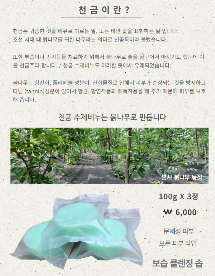 采用亲自栽培的高效改善湿疹和皮肤问题的千金树为主料,手工制作的天然皂。首次以最优惠价格在Wadiz公开。