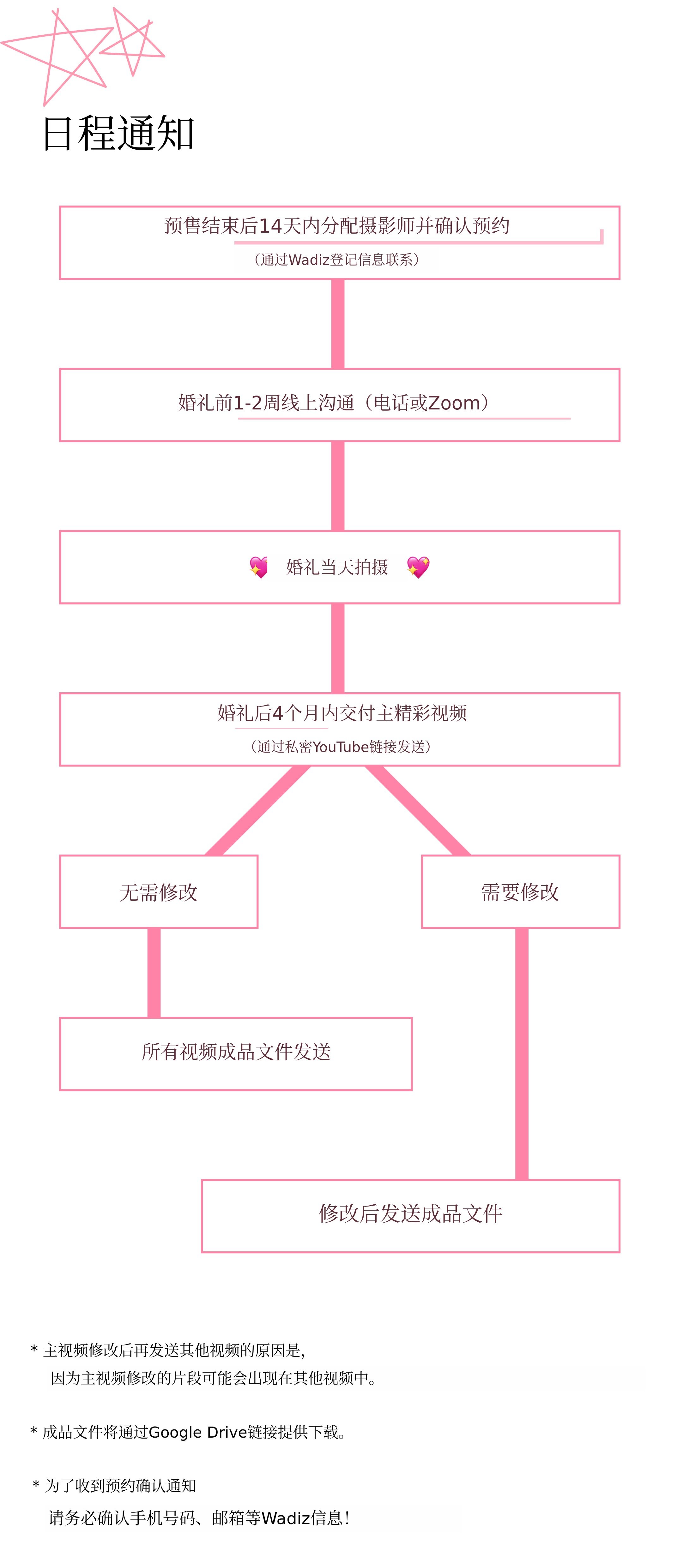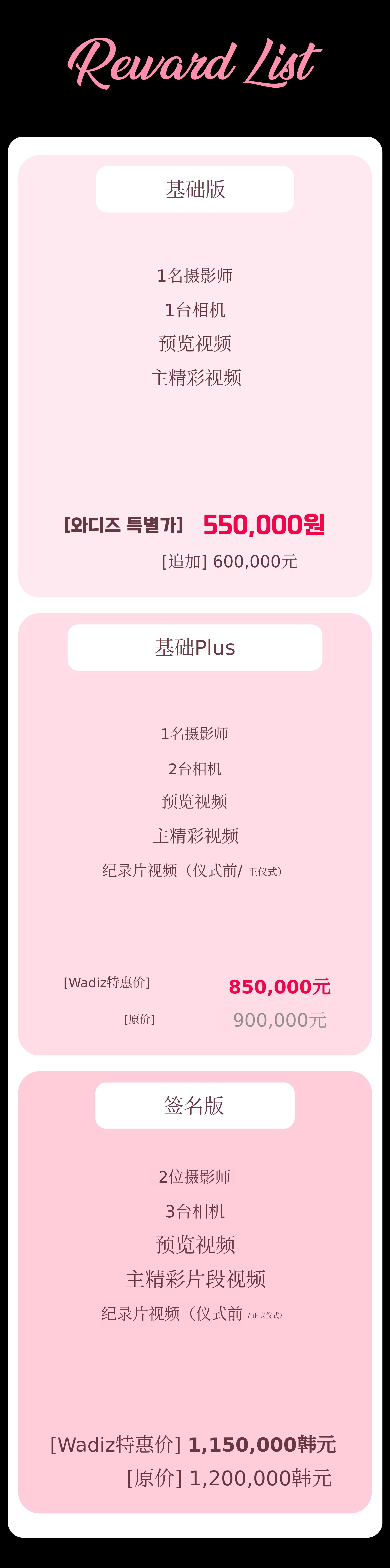 *婚礼日期已确定的支持者,在预约购买结束及最终支付结束时,我们会通过登记的信息将预约确认信息通过KakaoTalk单独通知每位支持者。