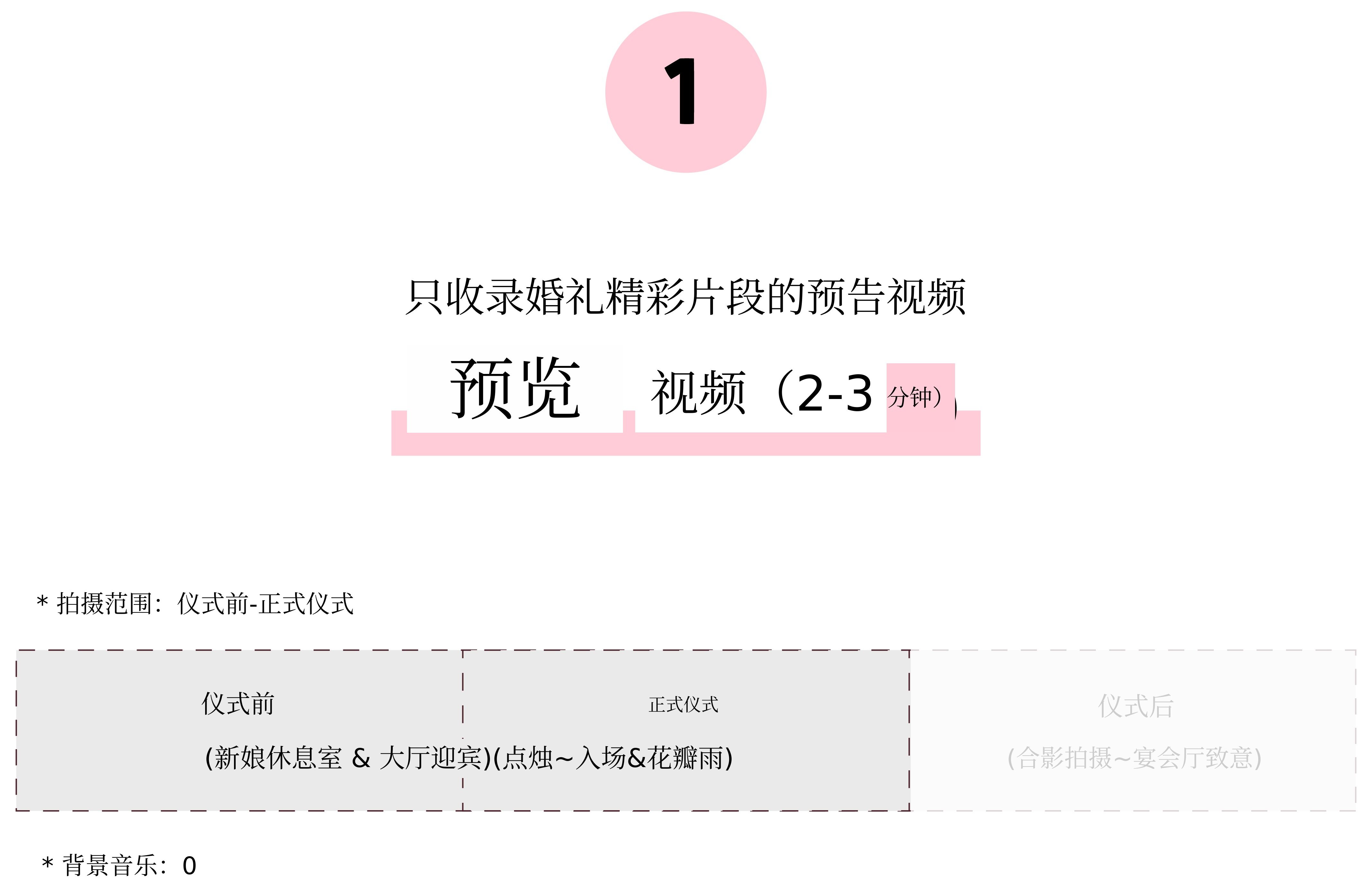 [A]婚礼当天 当天 视频 为您拍摄的 服务,因此, 拍照或 服装, 美发, 化妆 提供 等 不适用 。