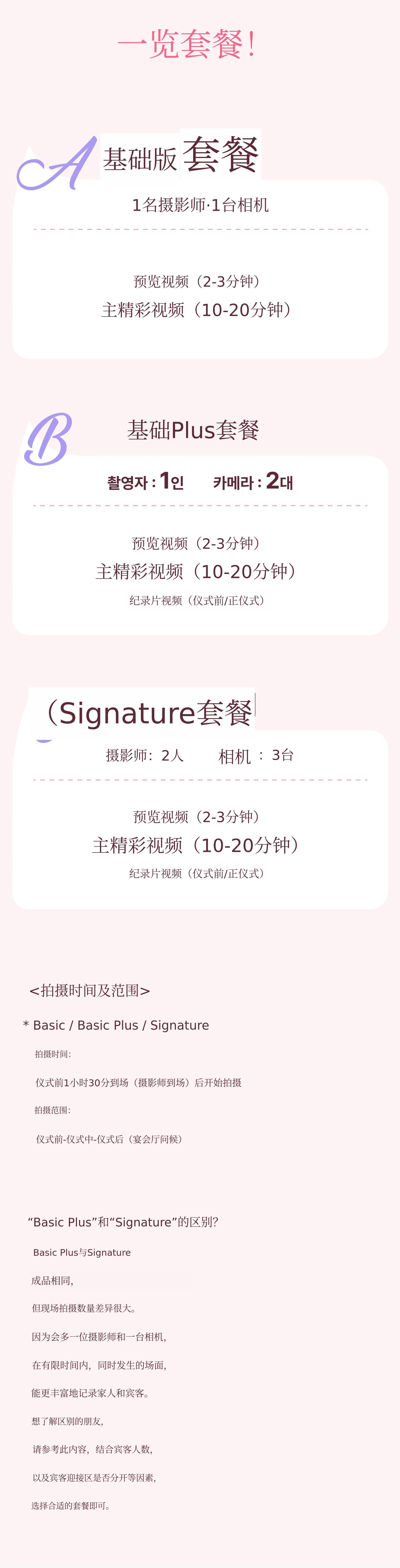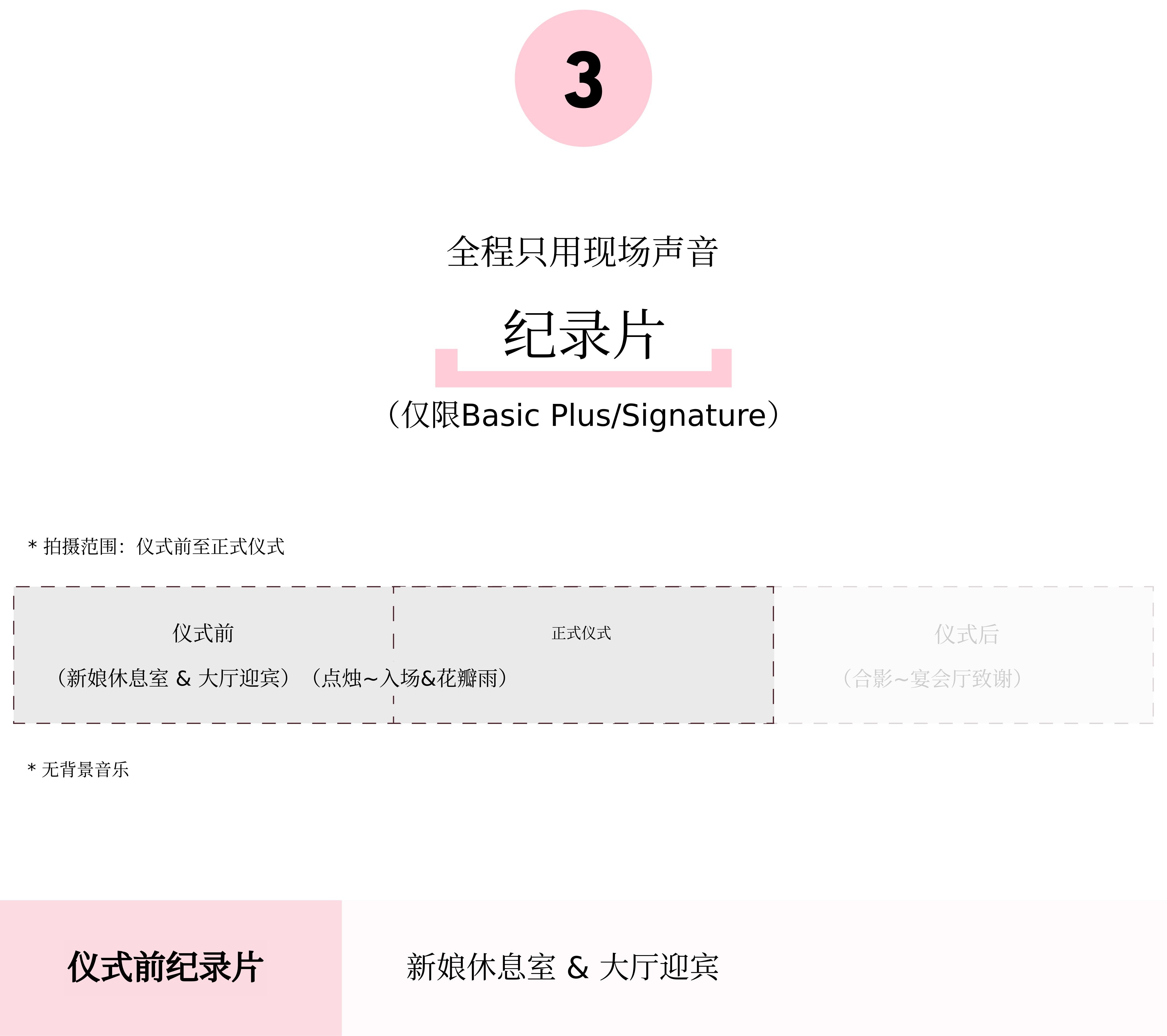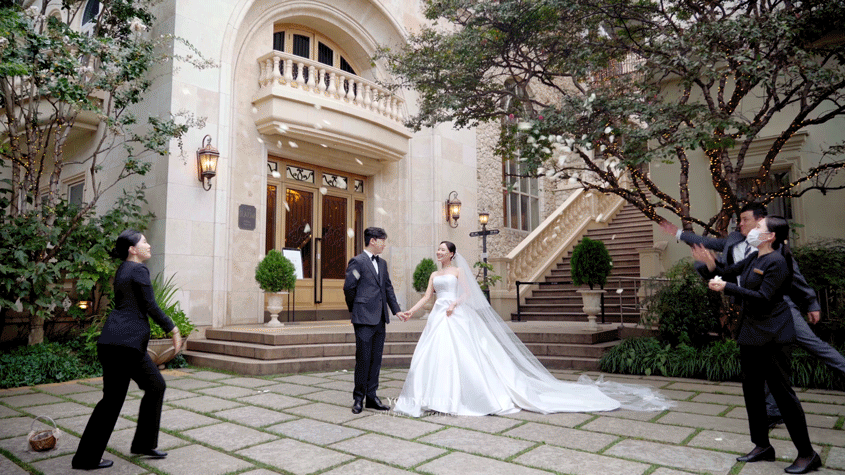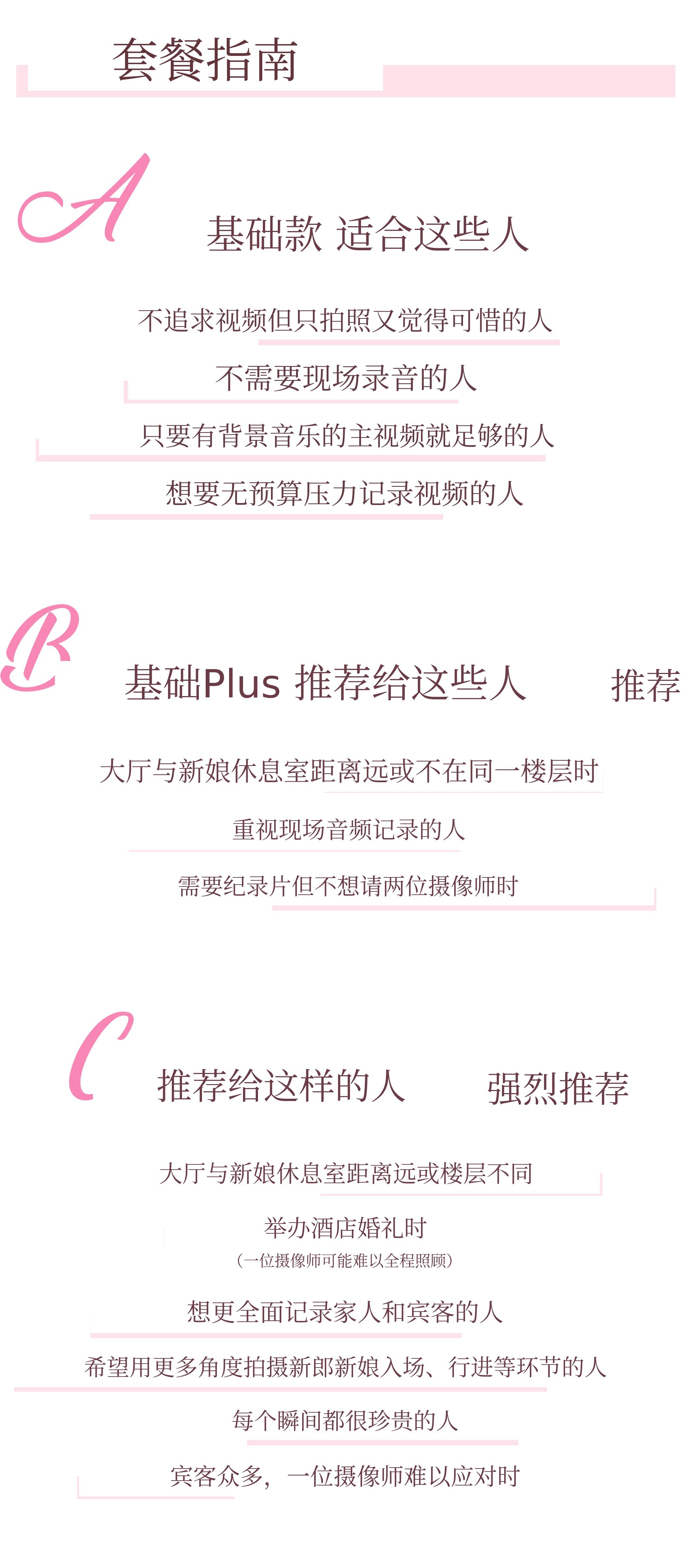 [A] 从新郎新娘到达婚礼现场后到宴会厅问候为止全程陪同(宴会厅问候不会拍摄到最后,拍摄到一定程度后会结束)。