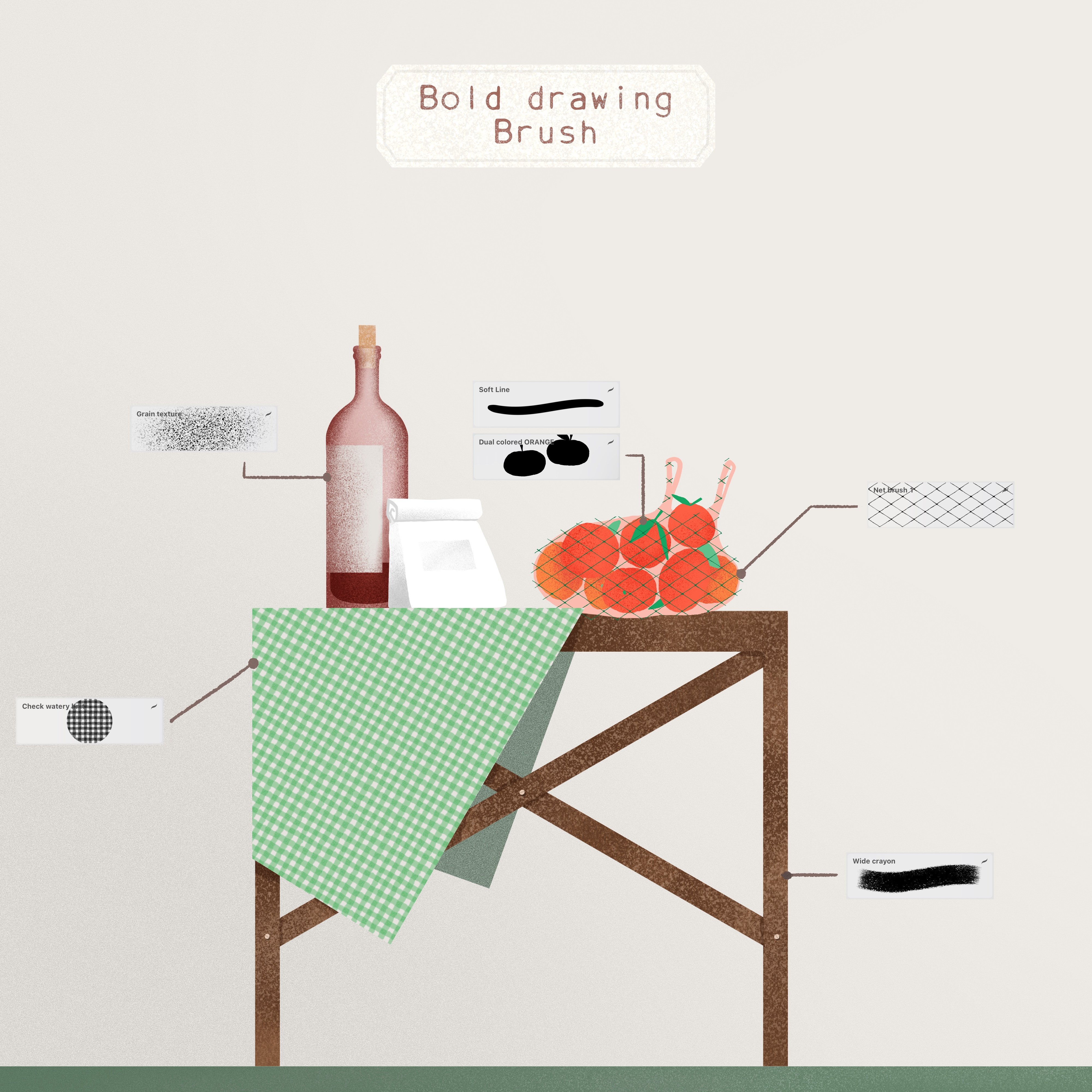 桌上的布料使用了BG-Checks的Watery check笔刷。