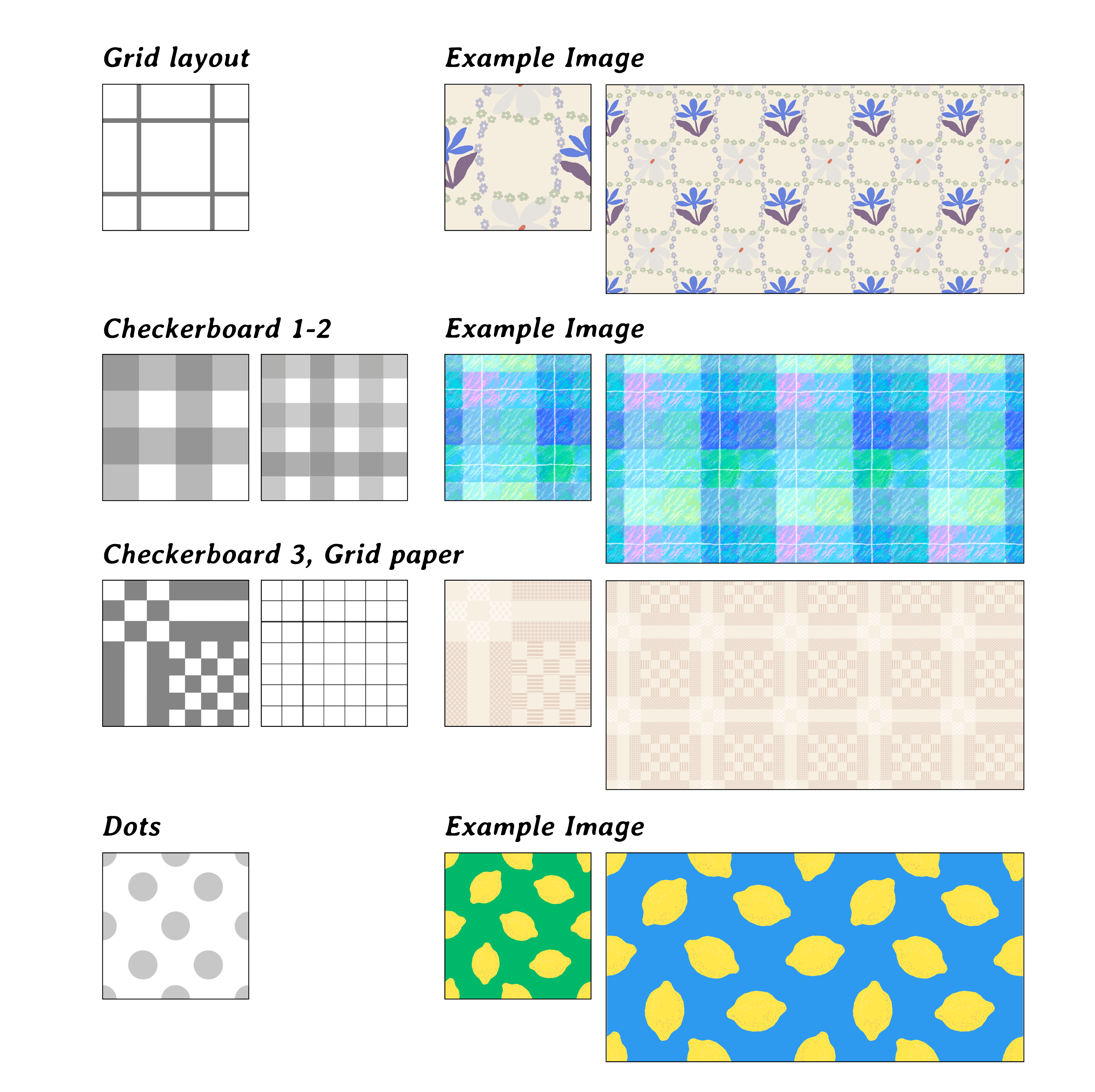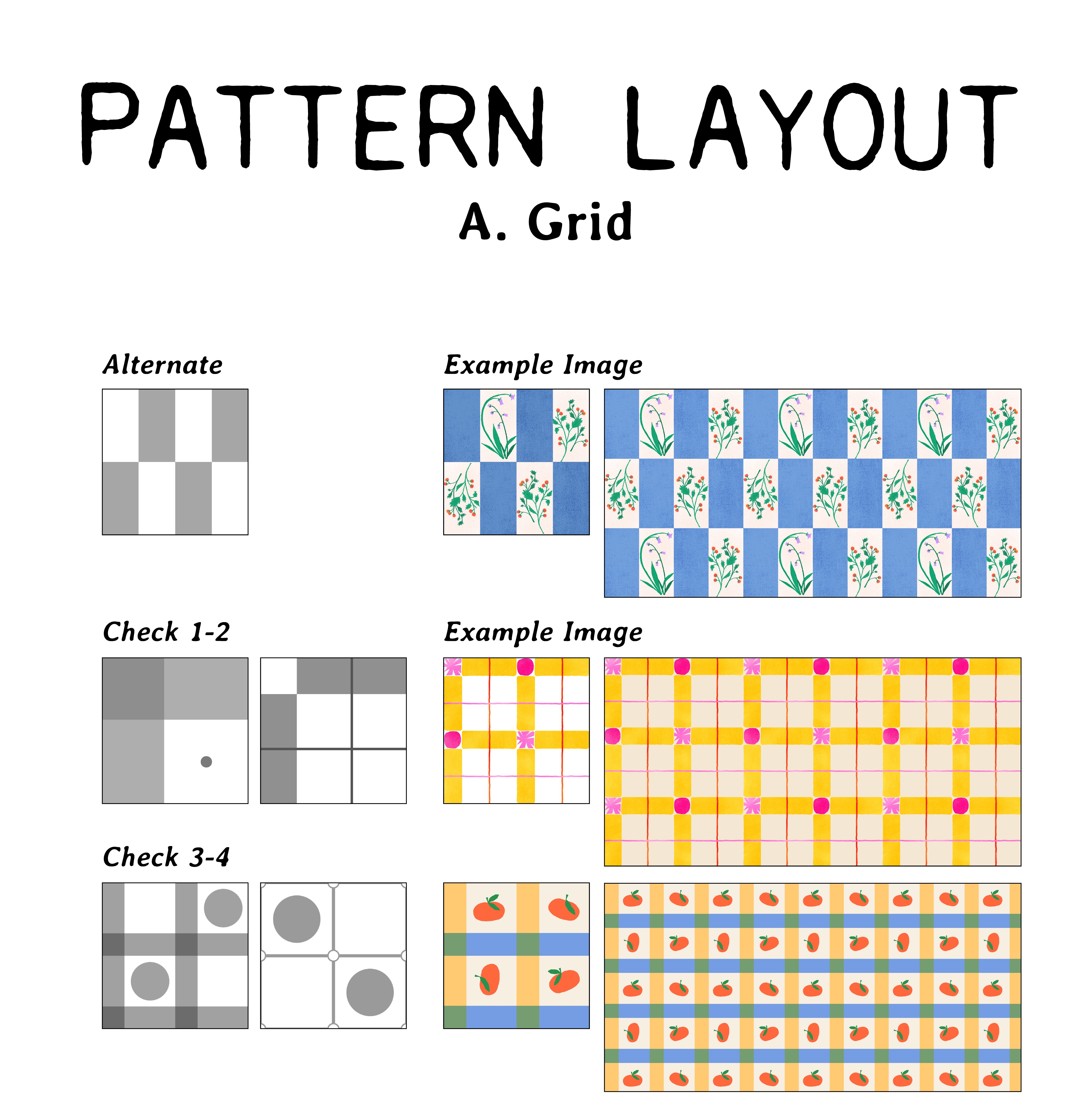 图案的间距、重复、布局结构。