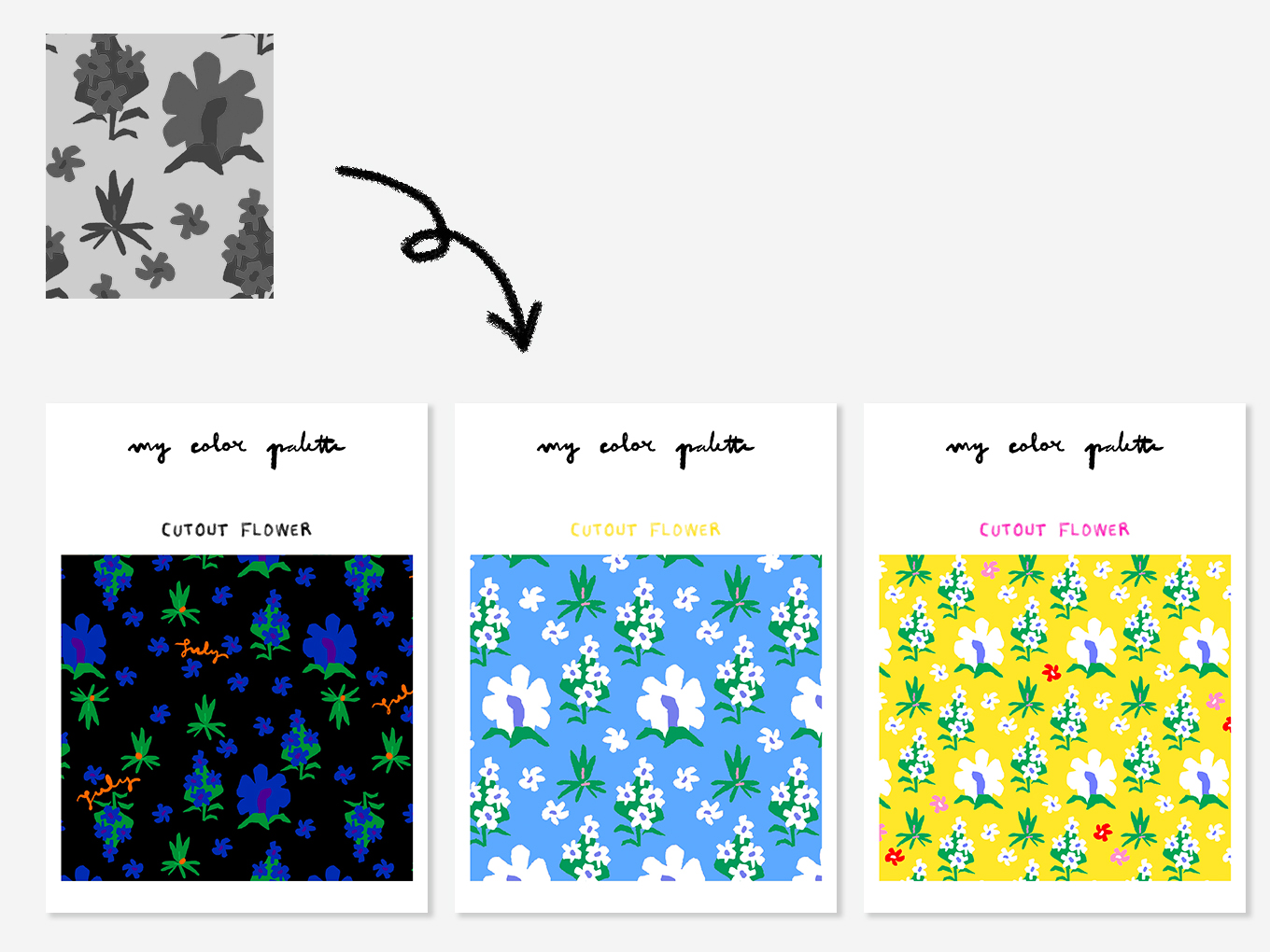 用一个图案元素制作多种图案设计后产品化,并扩展到数字销售