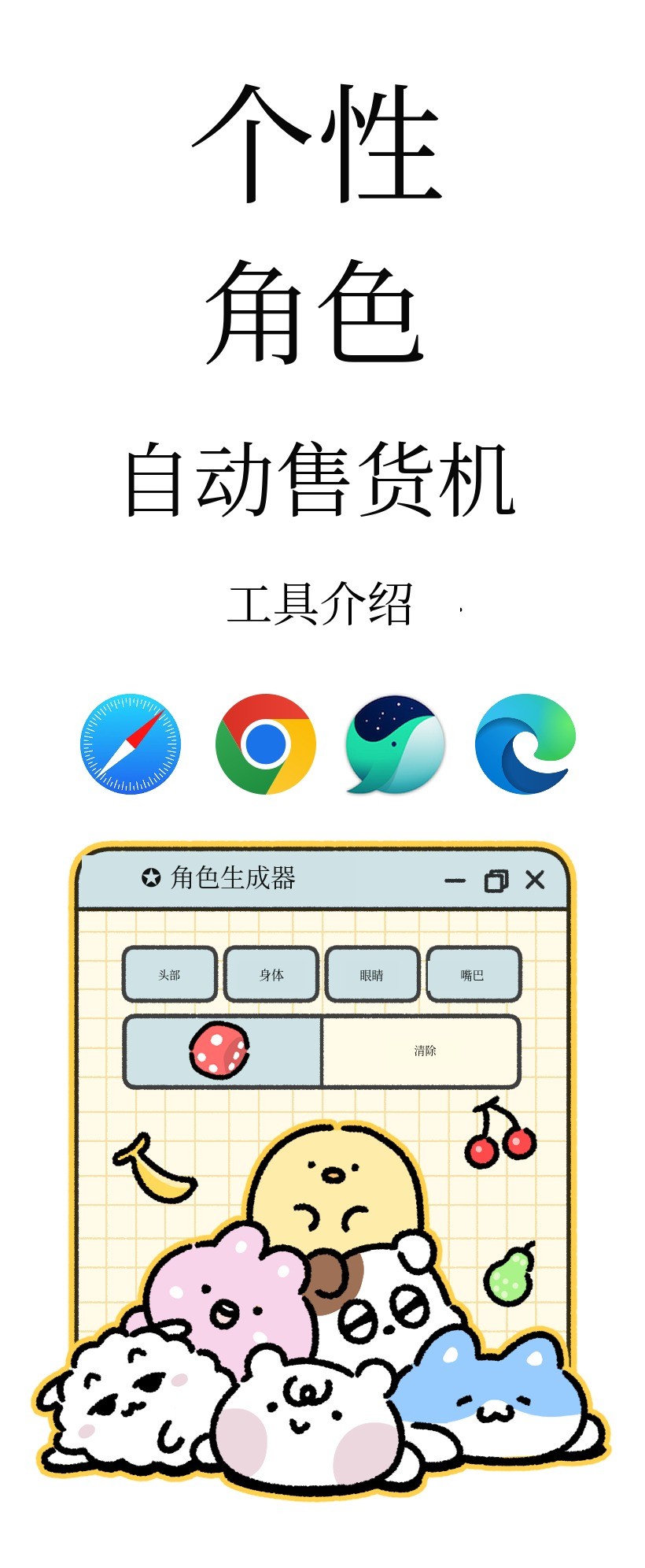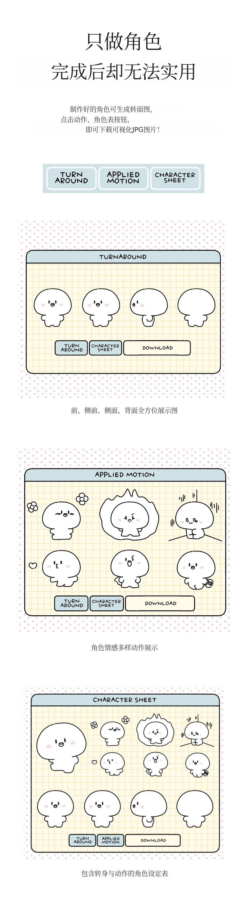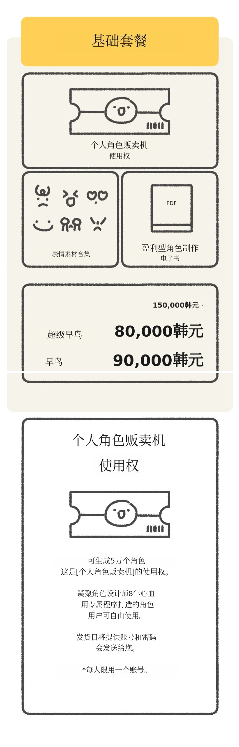 - 为防止用户间角色重复,基本形状(动物种类、五官、身体)都会实现。(角色的重点和颜色请参考电子书自行添加。)