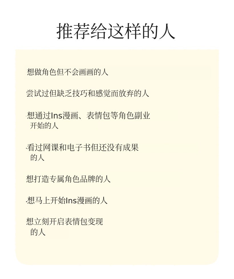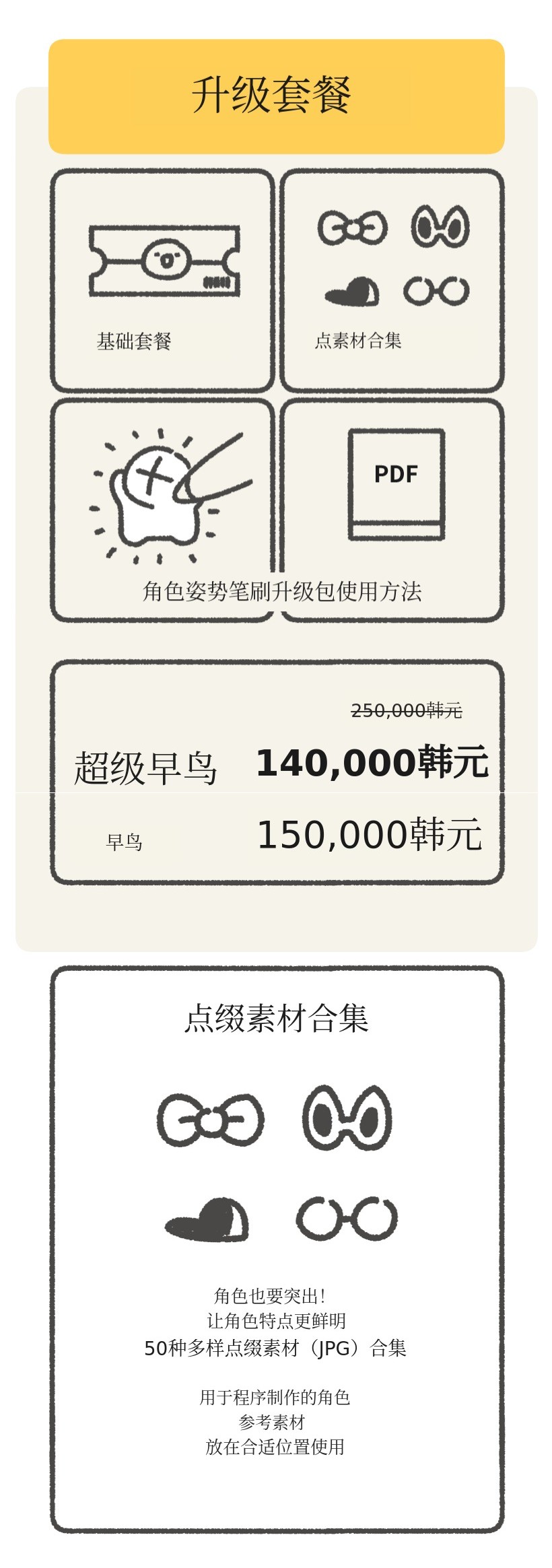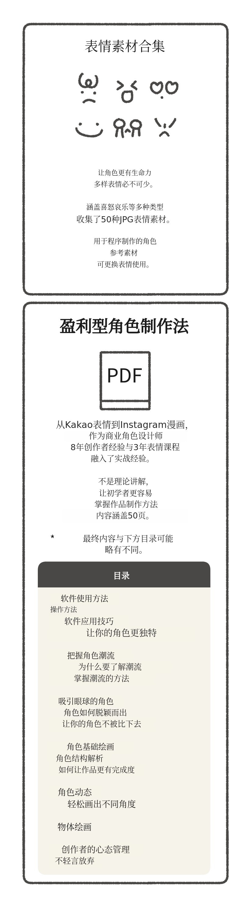 - 为防止用户间角色重复,基本形状(动物种类、五官、身体)都会实现。(角色的重点和颜色请参考电子书自行添加。)
