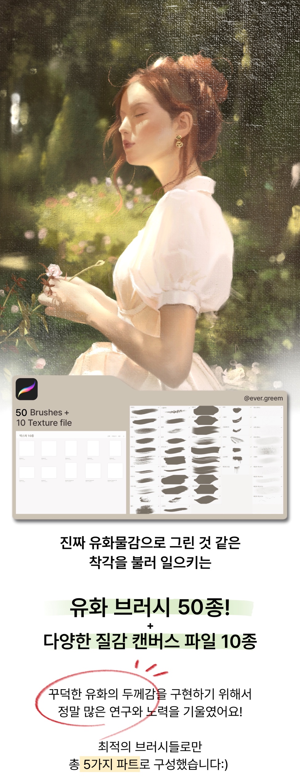유화 브러시는 총 50종의 브러시로,