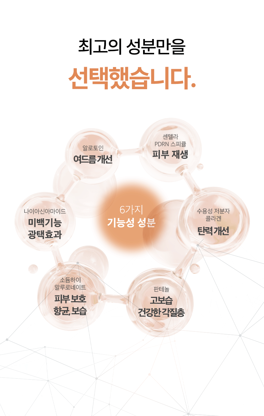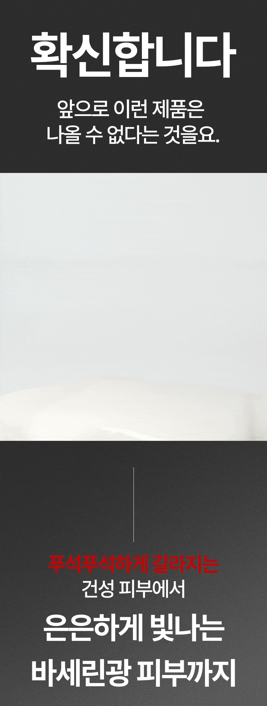 손상된 피부를 회복시키고, 탄력을 강화하여 건강한 피부로 가꿔줍니다.