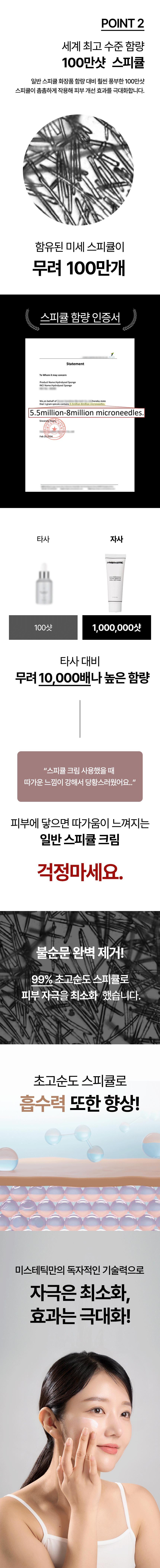 스피큘은 피부에 미세한 터널을 형성하여 유효 성분을 깊숙이 전달하며, 흡수력을 극대화합니다.