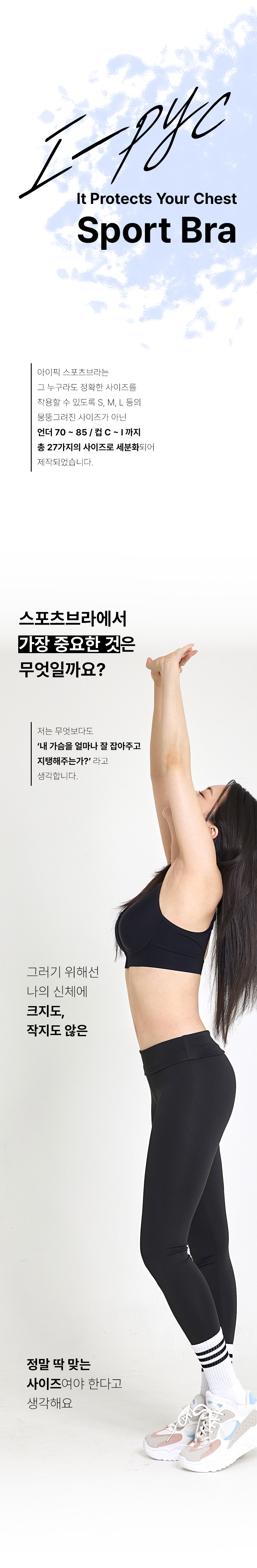 1. 🏃♀️ 大杯定制运动文胸 - 提供C至I杯27种细分尺码 2. 🛡️ 库珀韧带保护 - 运动时防止胸部下垂,提供稳定支撑 3. 🇰🇷 韩国制造品质保障 - 针对韩国体型优化设计,国内生产