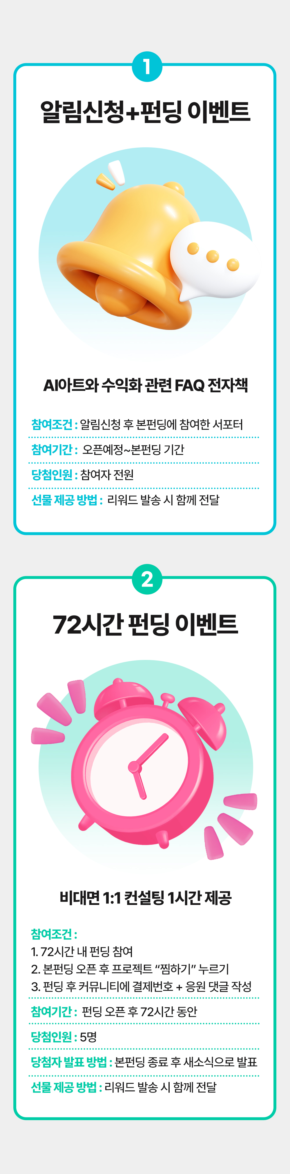 A8. 발송 방법: 리워드 제품과 알림은 이메일을 통해 제공되며, 구글 드라이브를 통해 다운로드할 수 있습니다.