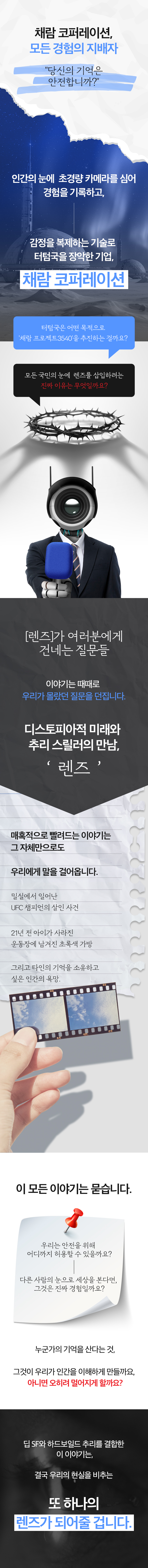 이런 질문들이 '눈에 카메라를 삽입하는 사회'라는 극단적 설정으로 이어졌습니다.