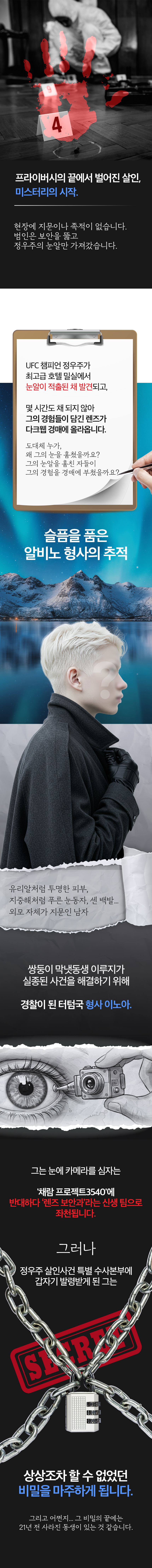 국내에서는 아직 생소한 SF 추리 소설이지만, 서점에 정식 출간하기 전에 와디즈를 통해 여러분과 먼저 만나고 싶습니다. 여러분의 눈을 통해 제 이야기가 어떻게 경험될지 기대됩니다.