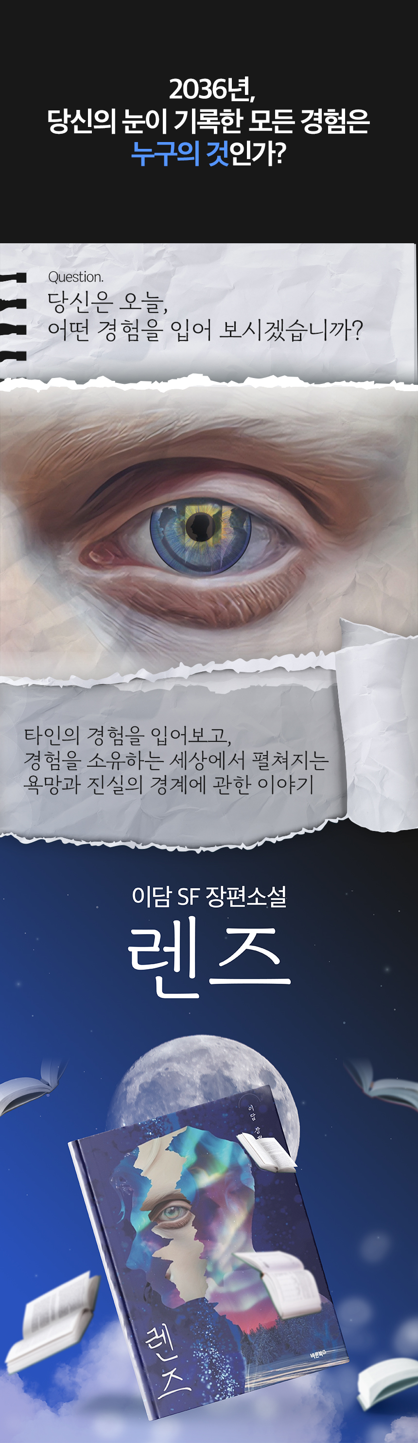 한겨울 아이슬란드의 차가운 아름다움 속에서 보았던 오로라처럼, 「렌즈」에는 인간의 따뜻한 감정과 어두운 욕망이 함께 흐릅니다. 현실에 밀착된 주제를 낯선 세계관을 통해 바라보는 것, 그것이 SF의 매력이라고 생각합니다.