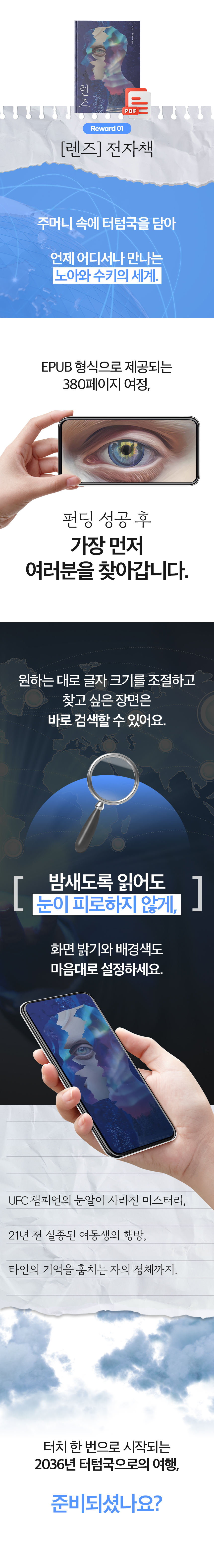 여러분의 지원으로 『렌즈』가 책으로 완성될 뿐 아니라, 시리즈의 두 번째 이야기를 준비할 수 있는 기회를 갖게 됩니다.