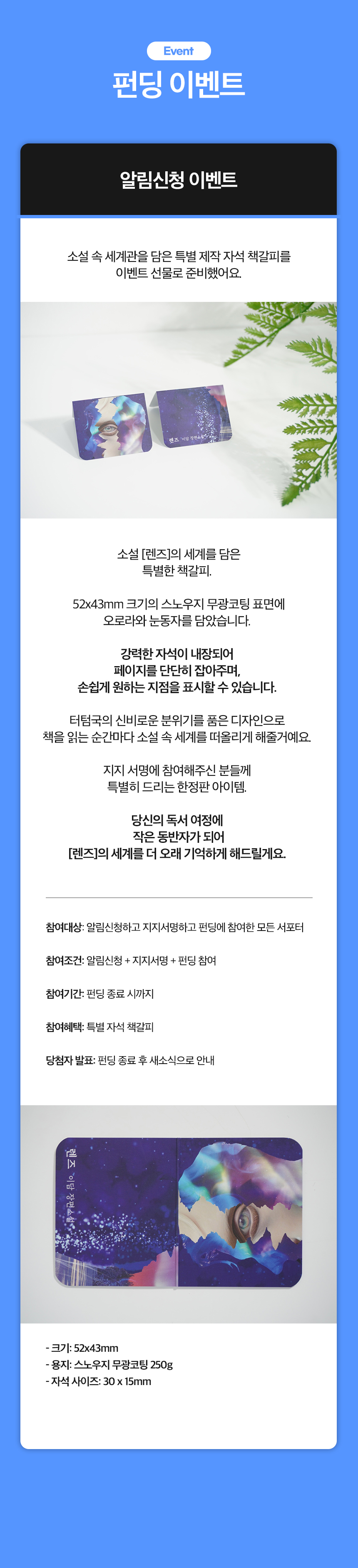작가 이담의 첫 장편소설 『렌즈』가 종이책으로 탄생할 수 있게 서포터 여러분의 많은 펀딩 참여 부탁드립니다.