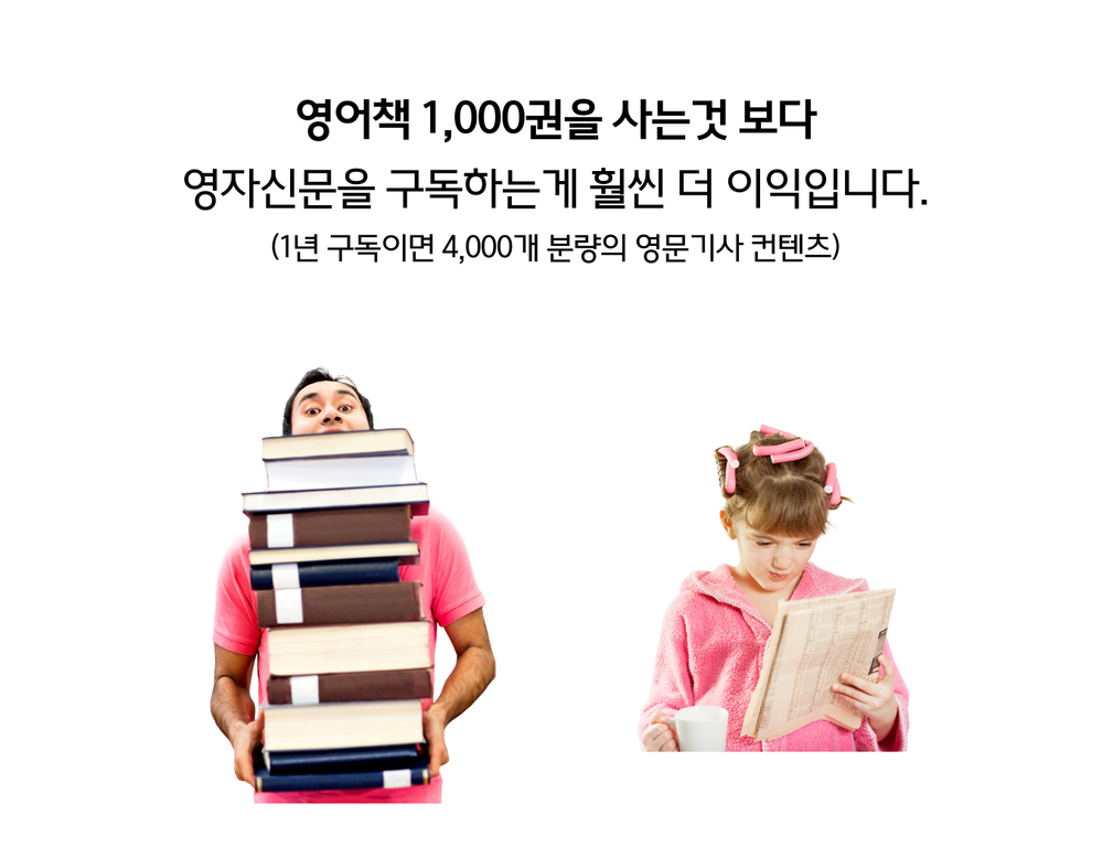 영자신문에는 영어를 배울 수 있는 다양한 영어콘텐츠가 정말 다양하게 많아요. 특히, 시사 정보와 함께 글로벌 이슈를 활용하여 배우는 영어주제가 매주 80개 이상씩 영어학습용 기사로 업데이트되어 제공되요. 한달이면 400개 넘은 영어 학습 컨텐츠가 생기는 샘이고, 일년이면 4,000권 이상의 영어책이 생기는 결과랑 같아요.
