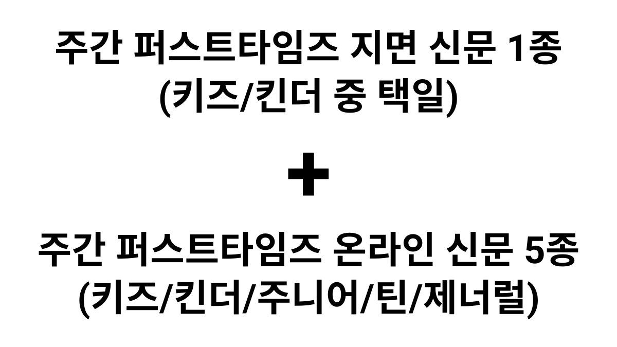 - 퍼스트타임즈 킨더, 키즈 (총 2종 지면 신문중 택 1) + 온라인 신문 5종 이용권