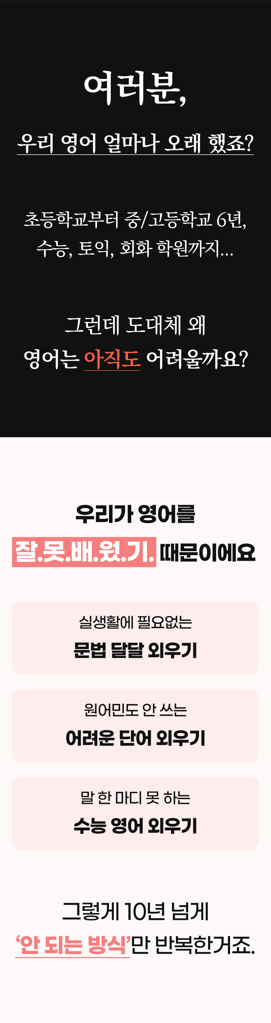 전 10년 동안 영어를 가르쳤습니다. 과외, 학원 조교, 학원 선생님 다 해봤죠. 영어를 가르친 지 얼마 되지 않았을 때 이런 의문이 들었습니다.