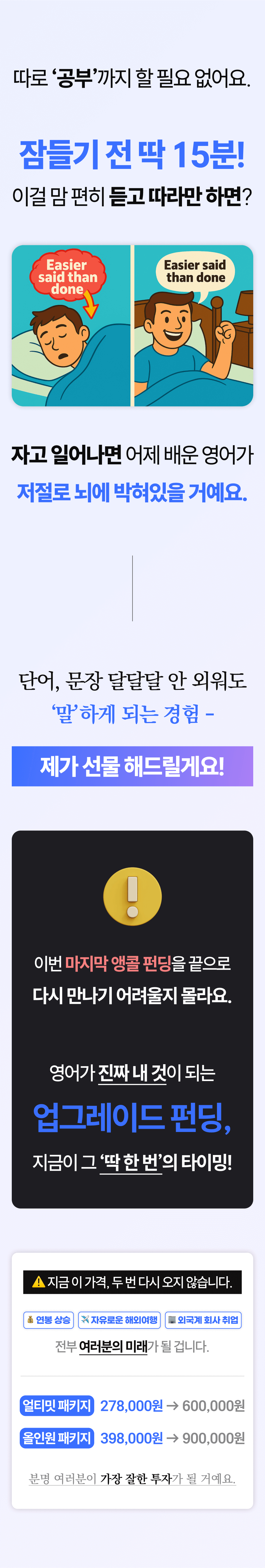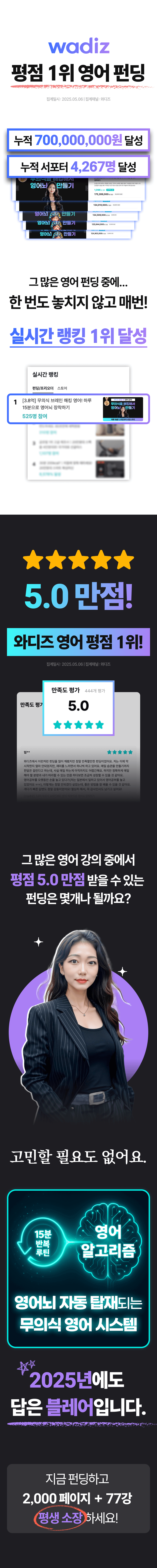 이제 저는 이 혁신적인 '무의식 영어 학습법'을 더 넓은 세상에 소개하고 싶습니다. 이 본 펀딩 프로젝트는 단순하게 교육 콘텐츠를 판매하는 것이 아닙니다. 제 열정과 수강생들의 성공 이야기를 통해 많은 이들에게 영어 학습에 대한 새로운 희망과 가능성을 제시하는 프로젝트예요.