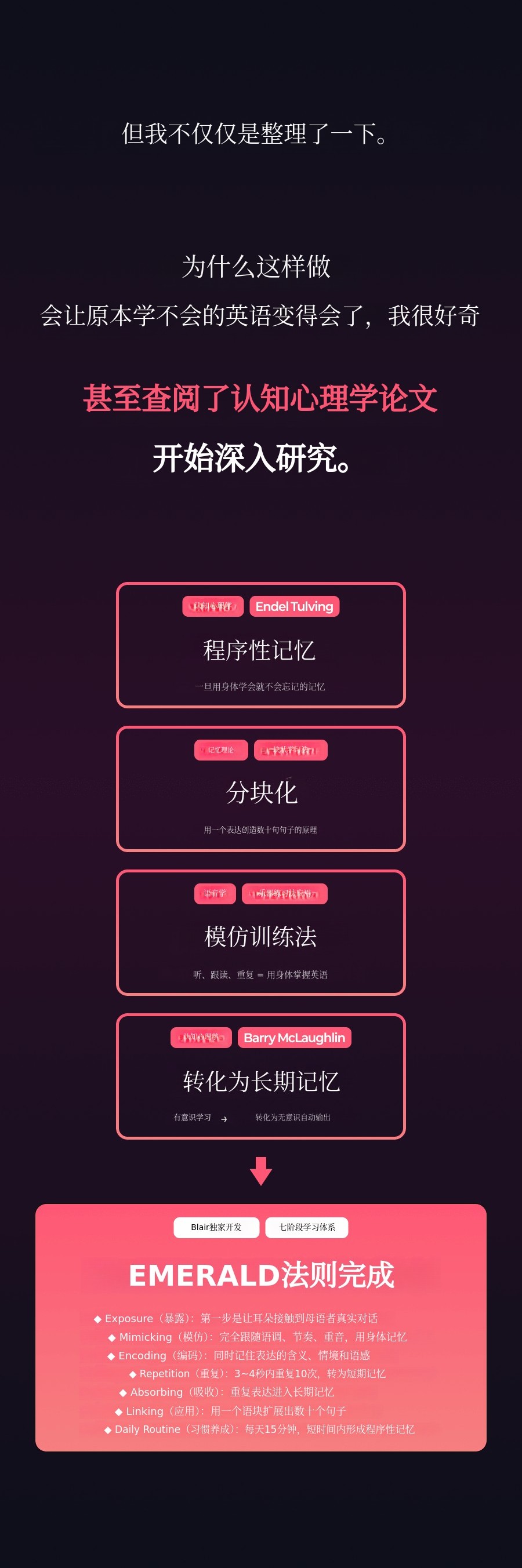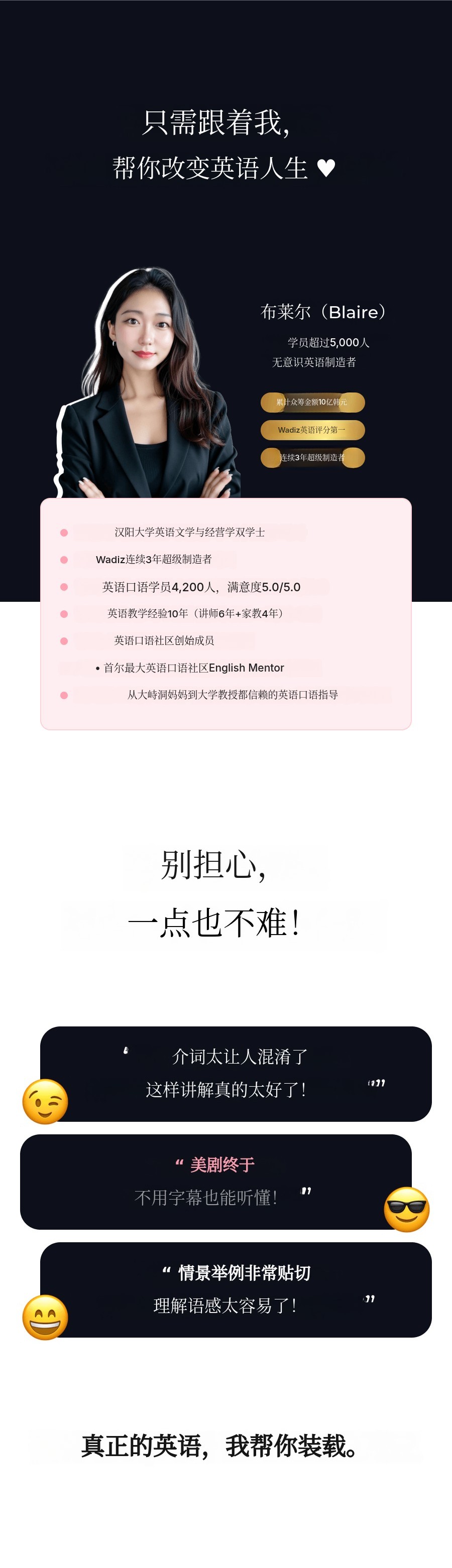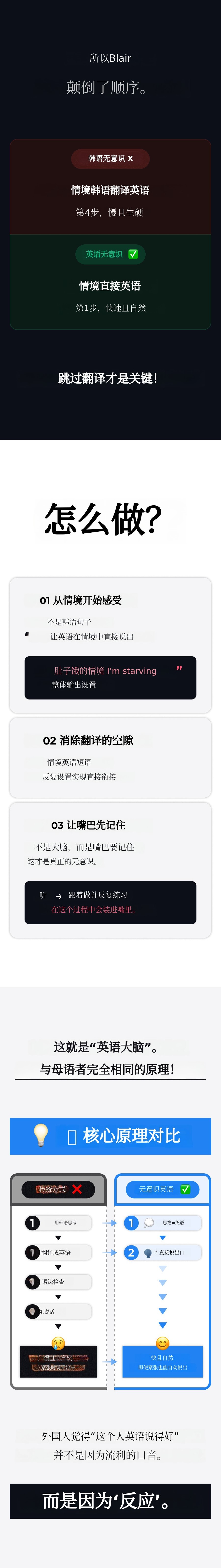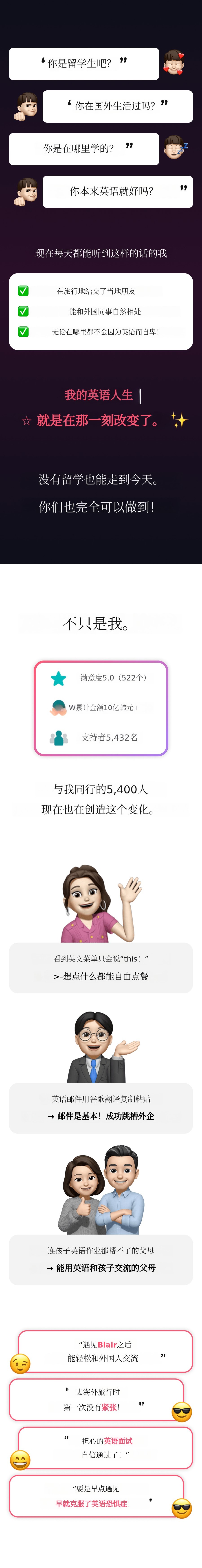 “无意识英语学习法” 这种创新的方法,让更多人能够跨越英语会话的障碍,获得自信,体验新世界。这就是我对这个项目充满热情的原因,也是布莱尔项目的核心信息。