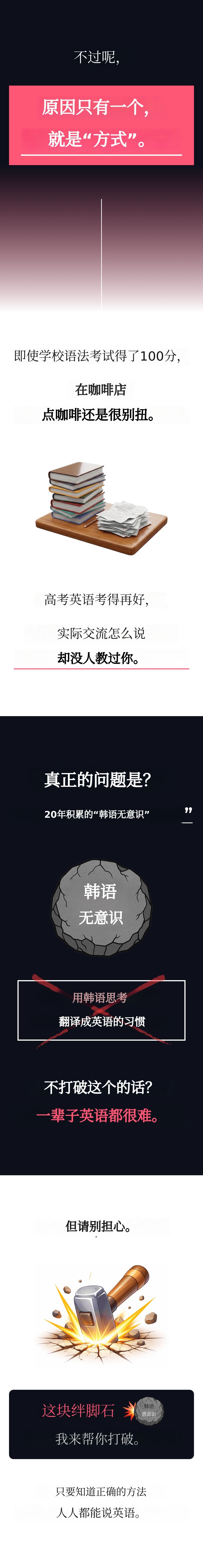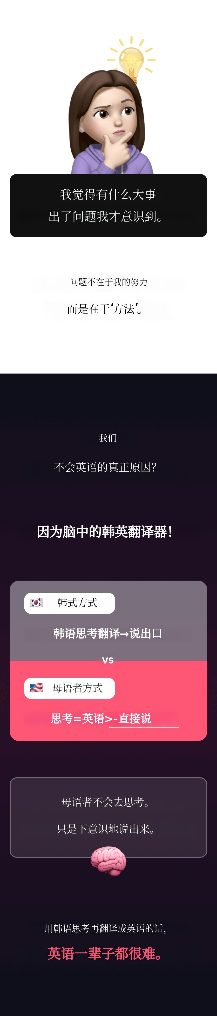 从那时起,我开始关注韩国ESL学生所遇到的困难。因为我主修英语,所以对ESL(以英语为第二语言)学习者如何接受英语的机制非常了解,发展心理学、认知心理学、教学法 等各个领域的理论我都进行了探索,并疯狂地阅读了论文、文章和期刊。'母语者学习英语的原理,韩国人也能同样适用吗?' 曾经模糊的想法,经过研究和验证后,看起来真的可行!