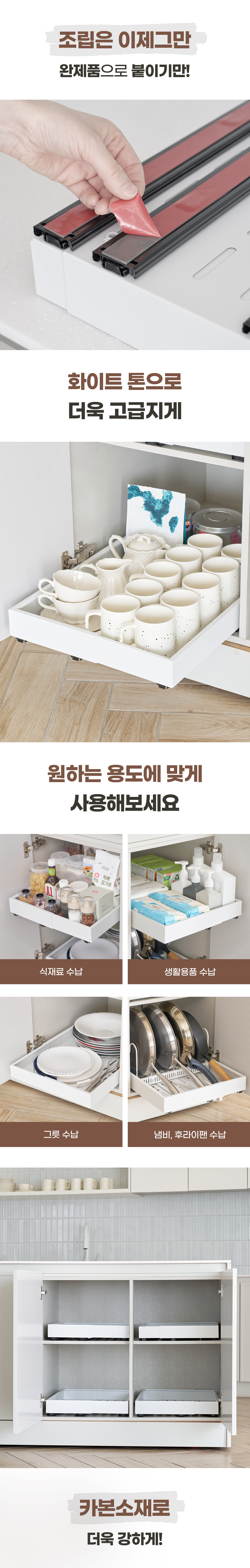 그동안 와디즈에서 많은 사랑을 받았던 주방 수납 제품들을 다양한 구성으로 선보이고자 신제품을 출시했습니다. 가정집에서는 틈새라 활용 못하는 구역이 정말 많은데, 그 구역을 정말 효과적으로 수납할 수 있게 한 큐에 해결해 줄 제품을 소개합니다.