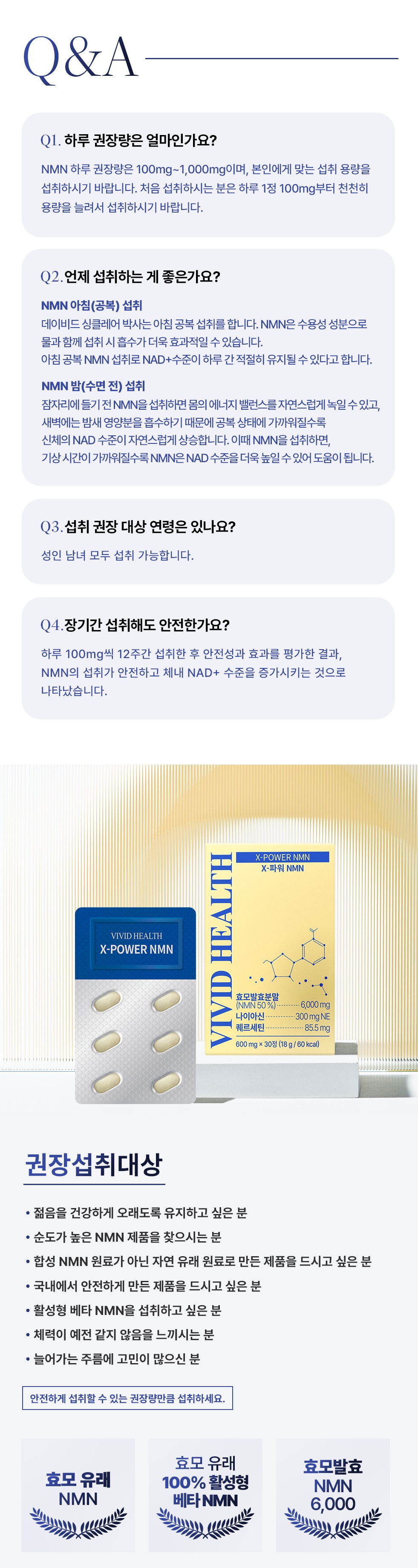✔ 미국산 NMN 원료 + 국내 제조로 믿고 먹을 수 있는 품질!