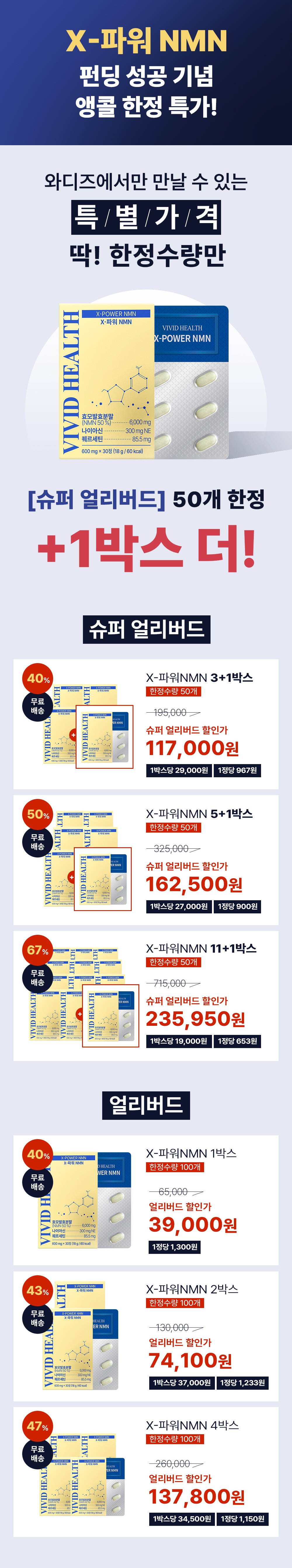 엑스 파워 NMN은 출시 전입니다. 와디즈를 통해 시장 반응을 미리 확인하여 제품에 대한 관심도와 수요를 예측하고자 합니다.