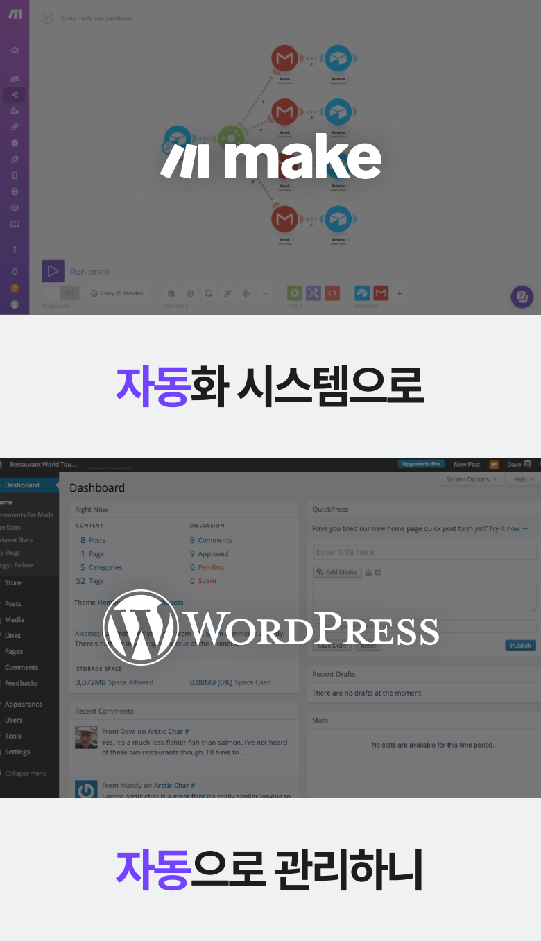 저는 이 모든 일련의 과정을 초월적으로 개선시켜주는 ‘자동화 피라미드’를 구축할 수 있는 방법을 알려드립니다. make.com과 다양한 SNS 서비스를 연계해서 나만의 피라미드를 구축할 수 있도록 도와드립니다.