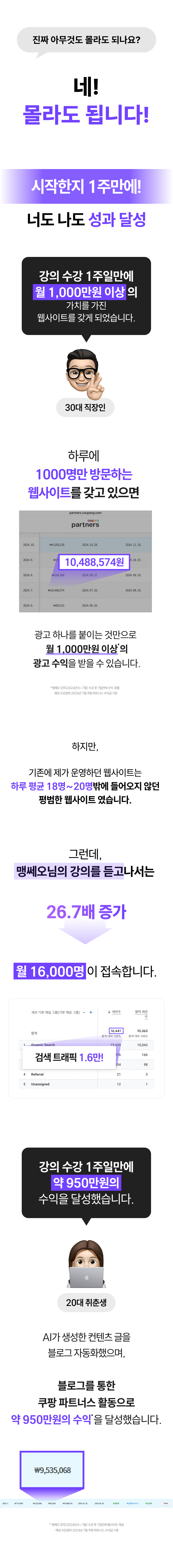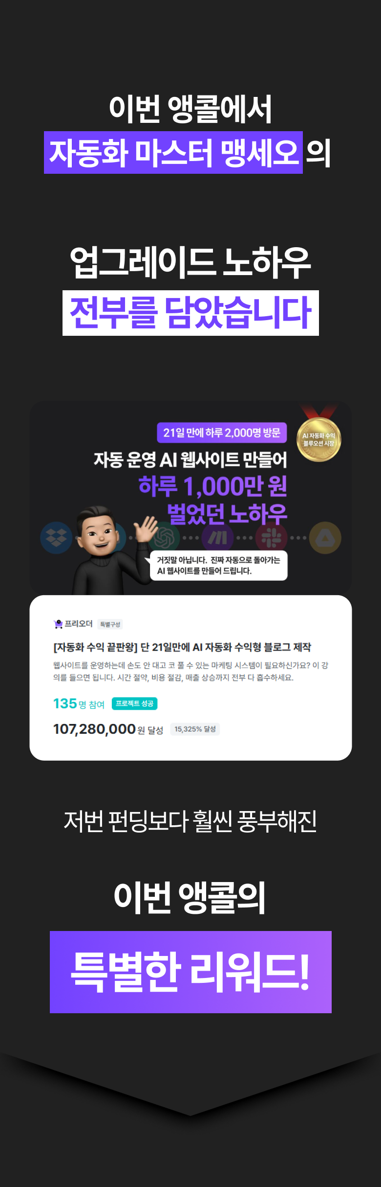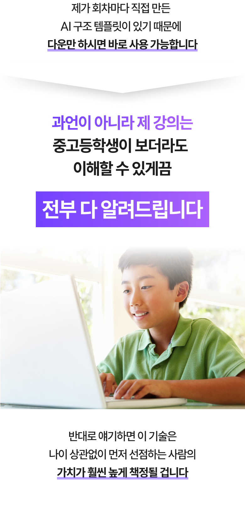 이 글을 여기까지 읽으셨다면, 똑똑하실수록 이 기술의 가치와 필요성을 더욱 더 잘 이해하실거라고 생각합니다. 현재까지 세상에 존재하지 않았던 기술이니까요. 저는 이 기술의 가치를 가장 잘 이해하시는 분께, 아낌 없이 제가 가진 모든 지식을 드리고 싶습니다. 새로운 시대의 기술의 수혜자가 이 글을 읽는 대표님이었으면 좋겠습니다. 그러면 강의에서 뵙겠습니다! 감사합니다.