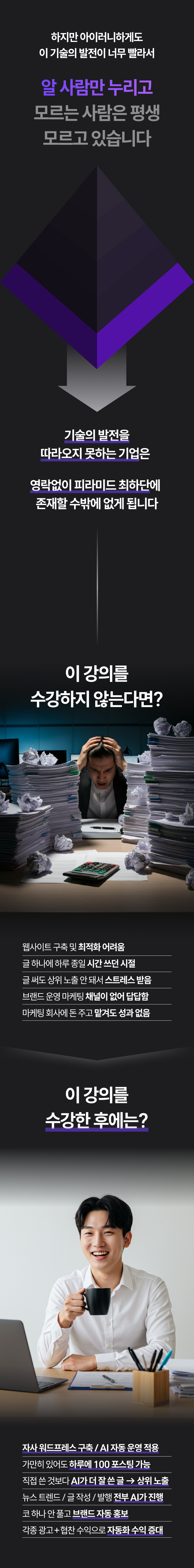 이 강의는 콘텐츠 작성부터 발행, 여러 채널과의 연동까지 모든 과정을 자동화합니다.