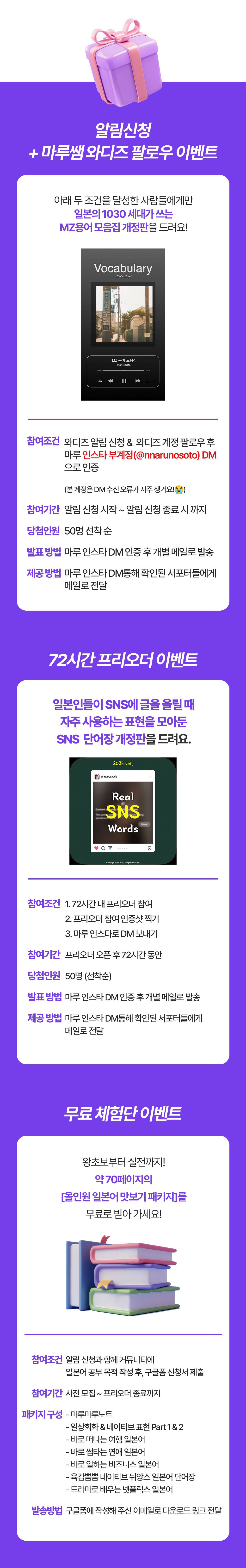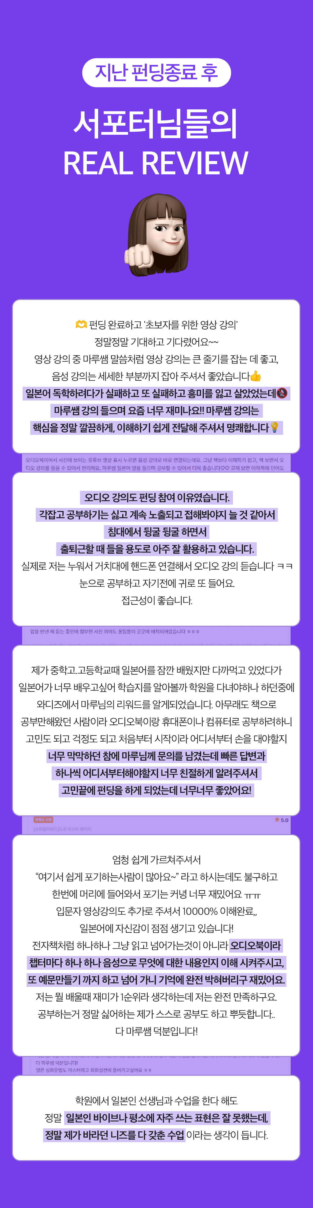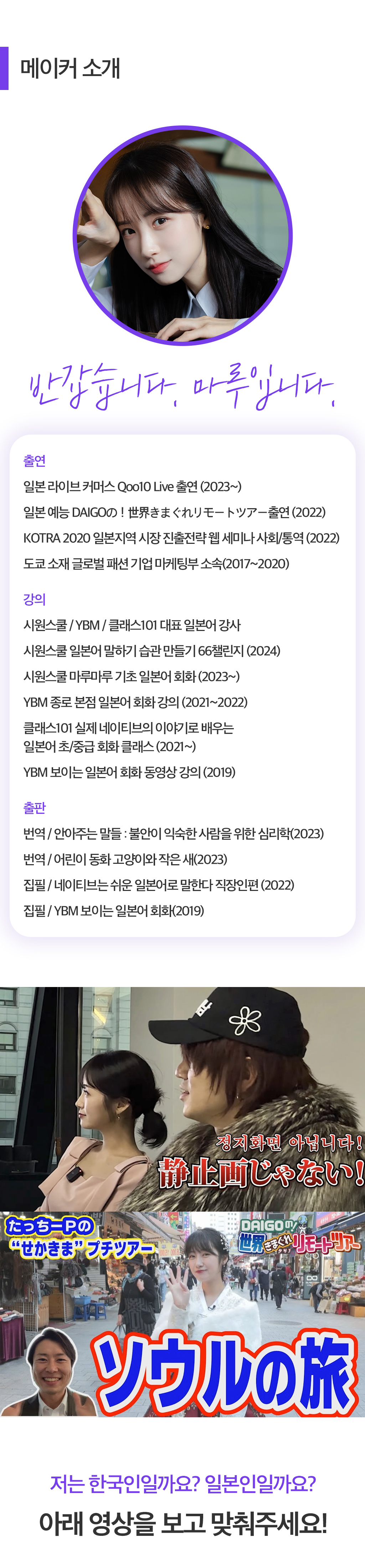 이런 부분에서 듣기만 해도 완성되는 마루의 극실용주의일본어 콘텐츠가 여러분들께 너무 특별할 것 같았어요.