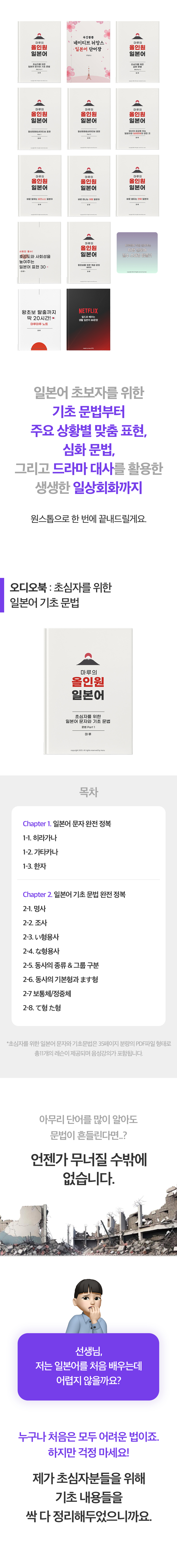 A.그럼요! 히라가나, 가타카나부터 리얼 네이티브 회화까지 전부 포함되어 있는 올인원 오디오북인 걸요.전혀 걱정하지 않아도 된답니다. 하지만 글자를 외우는 데에는 어느 정도 시간이 걸릴 수 있기 때문에 히라가나, 가타카나는 미리 훑어보는 걸 추천해 드려요.