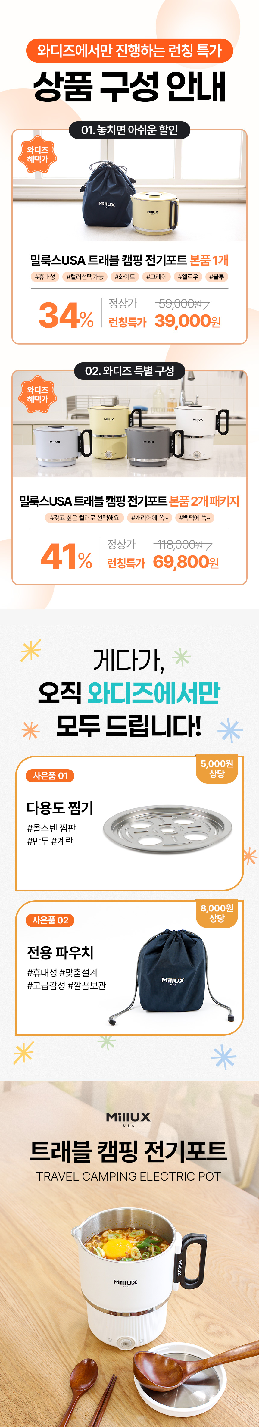 에셈컴퍼니는 일상과 여행에서 꼭 필요한 제품을 차별화된 디자인과 안전한 소재로 완성하는 것을 목표로 합니다. 이번에 선보이는 "밀룩스 캠핑포트"는 캠핑과 여행에서 가장 기본이 되는 ‘안전한 식수 준비’에서 출발했습니다. 환경호르몬 걱정 없는 SUS304 프리미엄 스테인리스를 적용하고, 휴대·세척·보관이 간편한 디자인으로 완성도를 높였습니다.“차별화된 아이덴티티, 오래 믿고 쓸 수 있는 제품”이 철학이 담긴 이번 프로젝트가 서포터님의 캠핑과 여행에 더 안전하고 만족스러운 순간을 선사하길 바랍니다.
