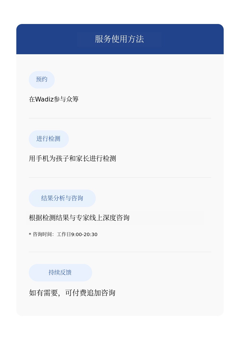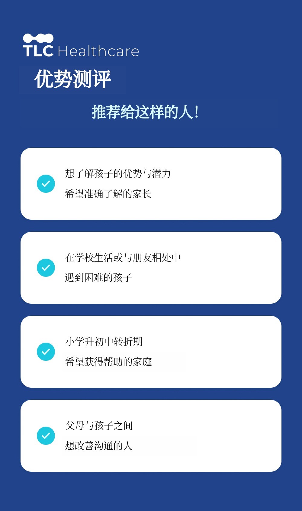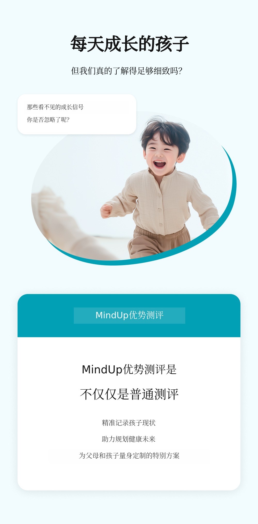 通过彻底的分析和个性化解决方案,希望更多孩子健康成长,更多家长不再错过孩子的潜力。