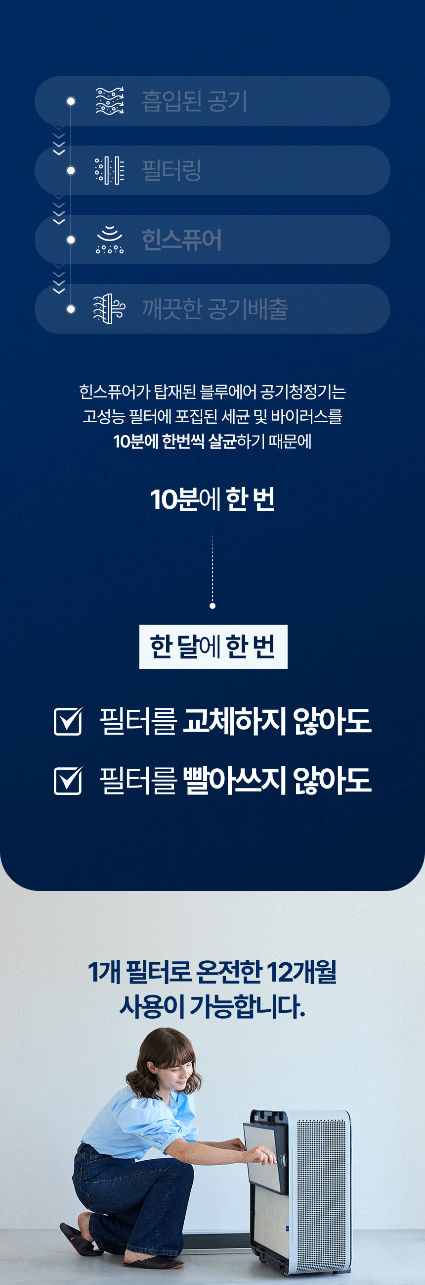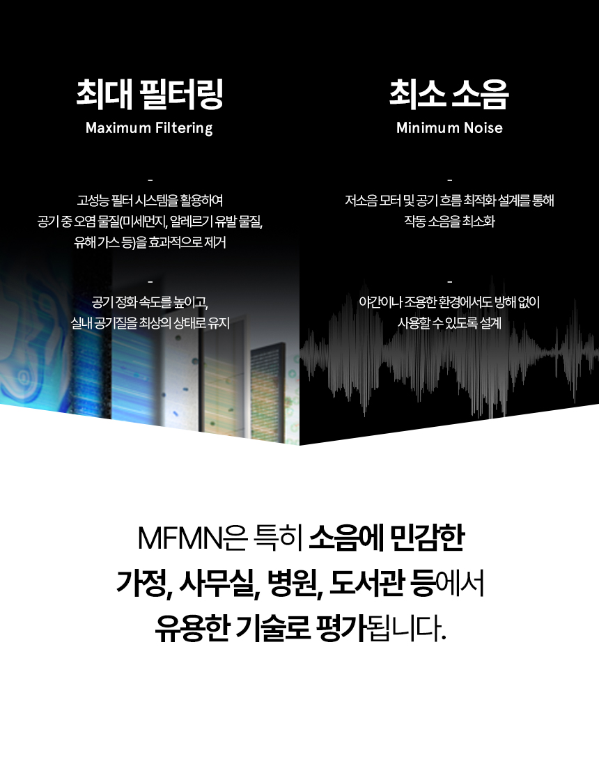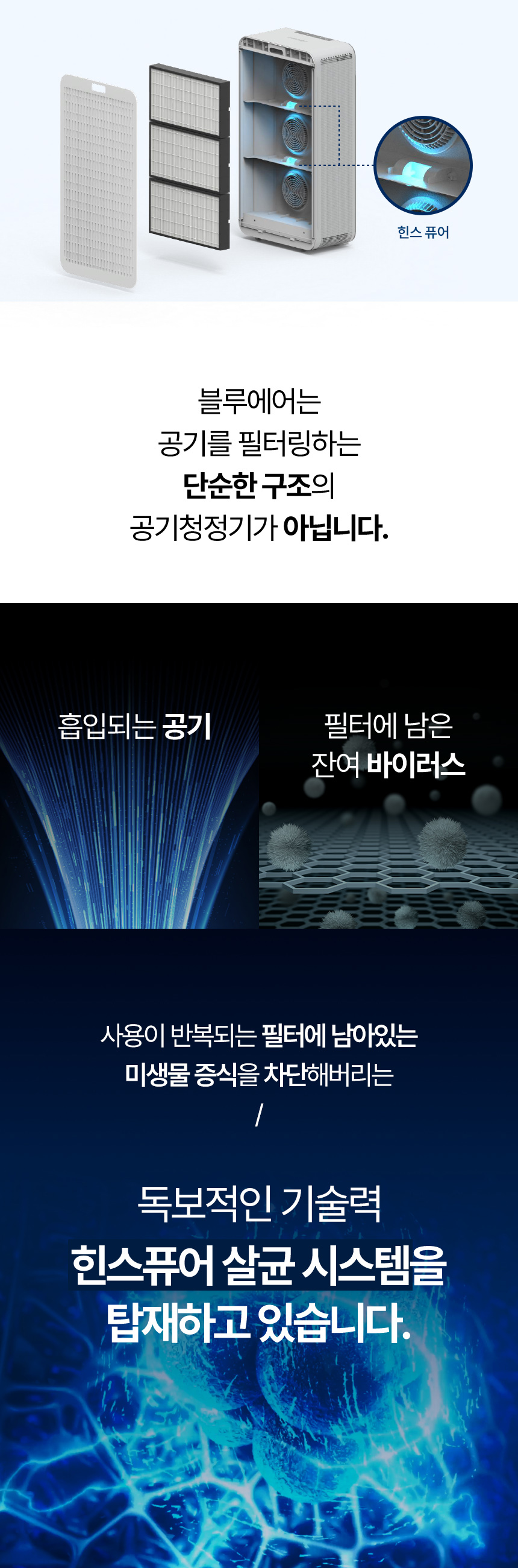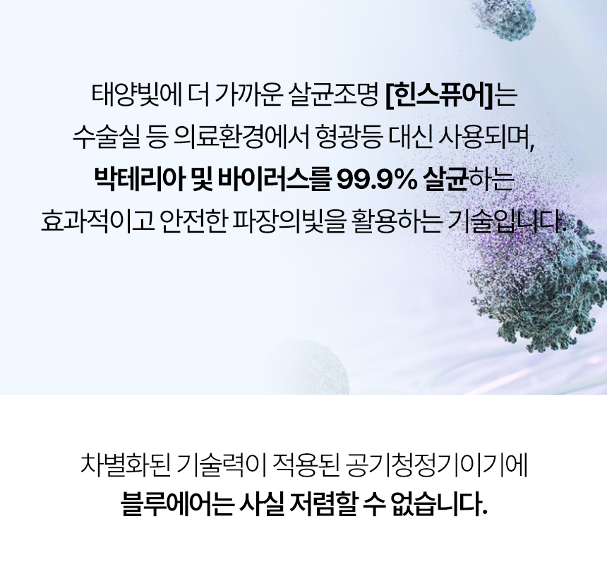 더 빠른 정화, 더 조용한 소음 그리고 가장 안전한 살균.