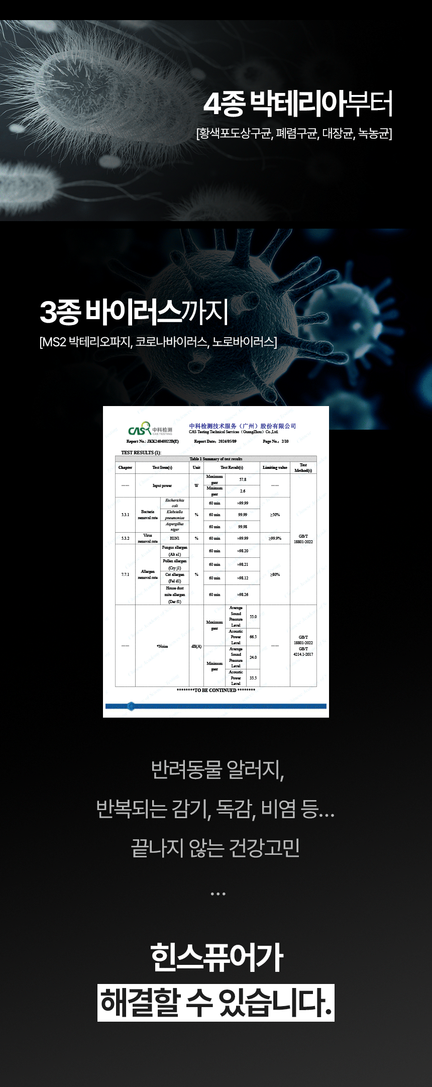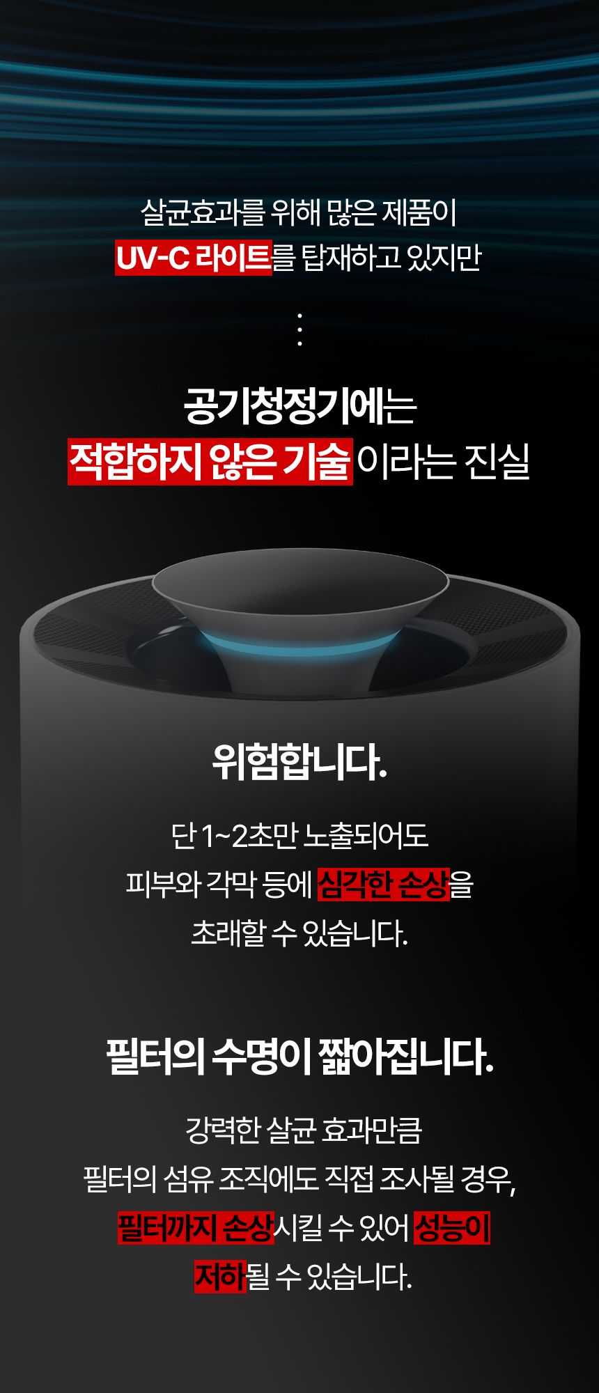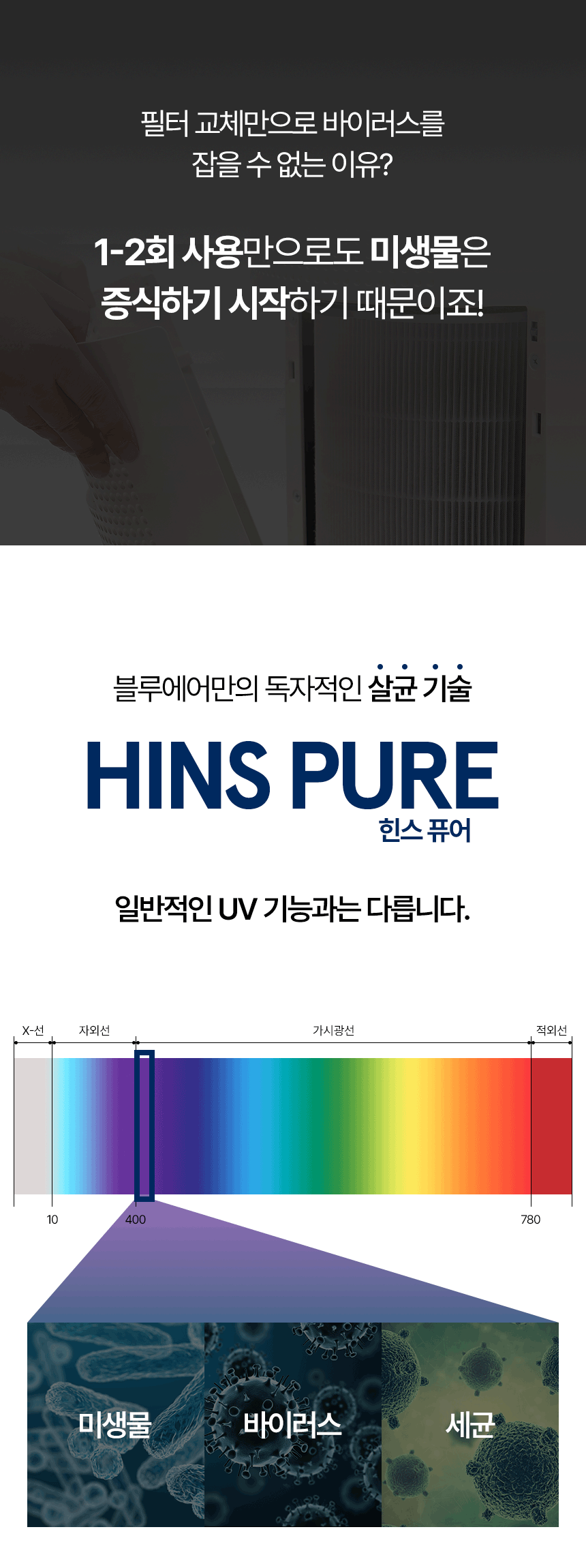 더 빠른 정화, 더 조용한 소음 그리고 가장 안전한 살균.