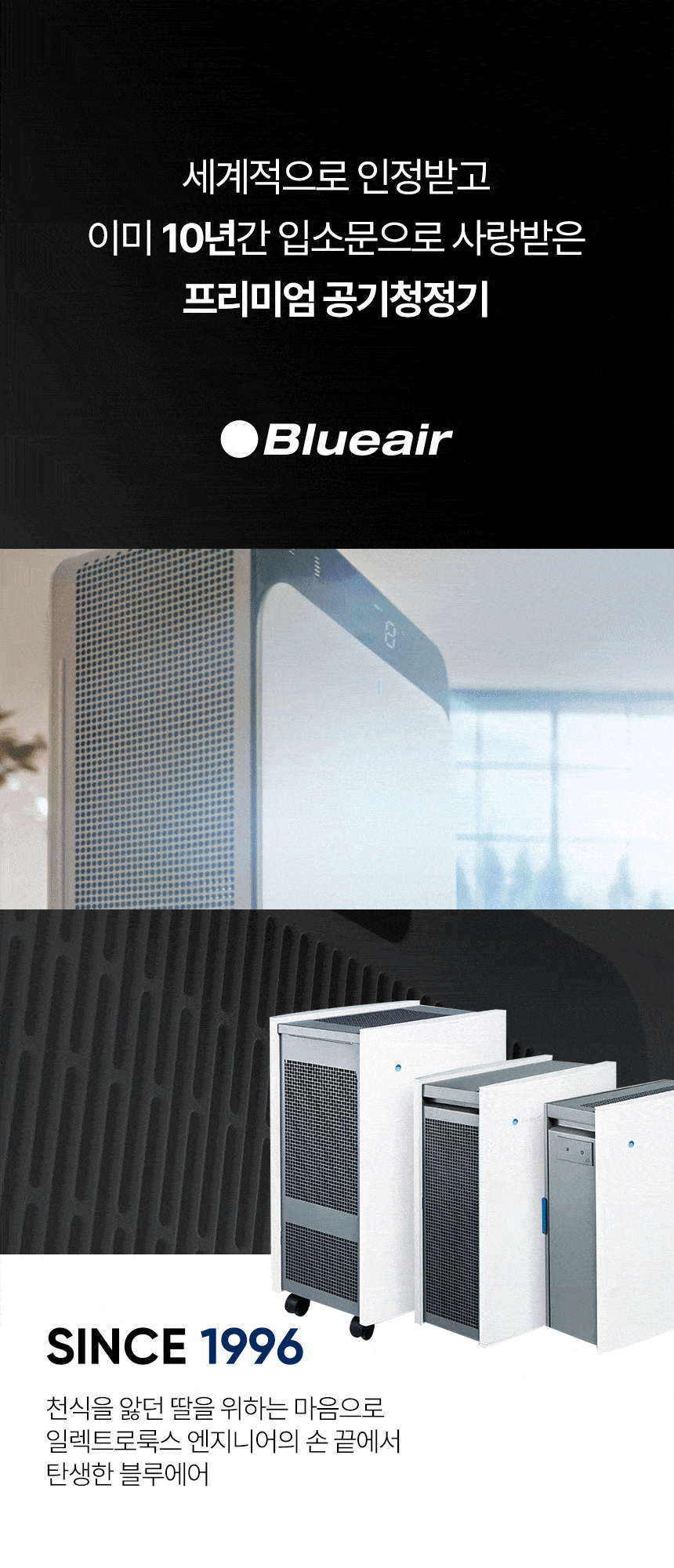 블루에어는 1996년, 스웨덴에서 시작되어 약 30년 동안 "깨끗한 공기와 더 건강한 삶” 을 위해