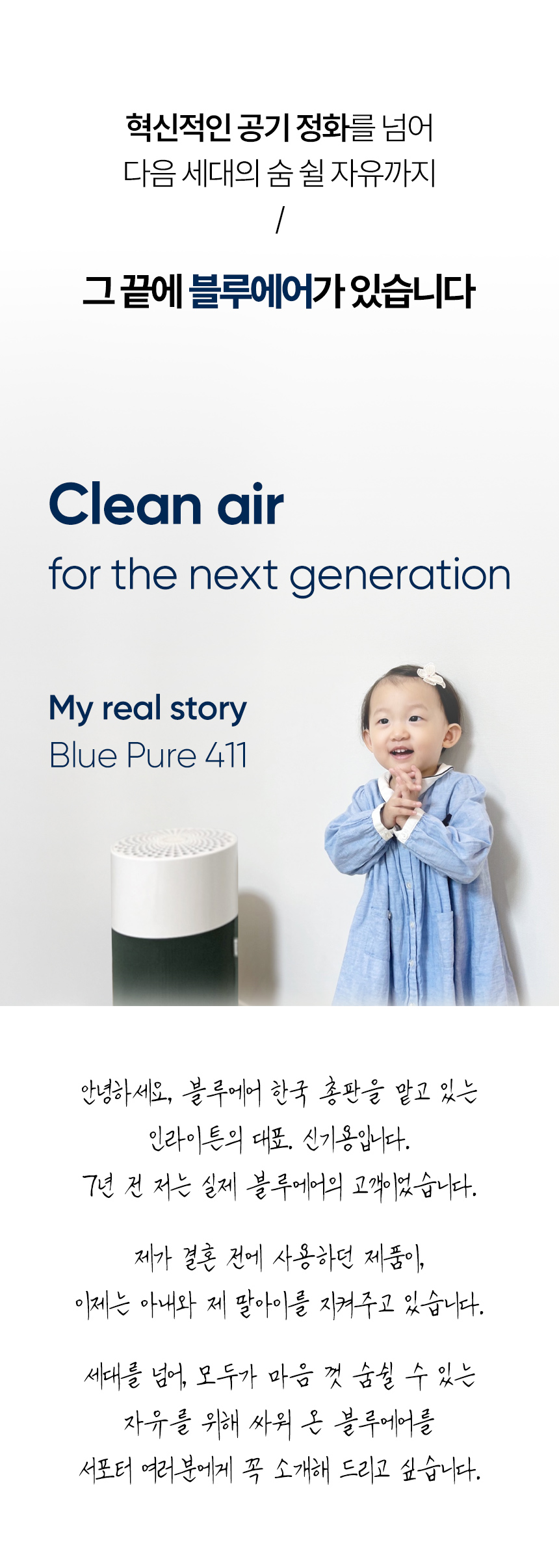 더 많은 사람들에게 건강한 공기의 중요성을 알리고, 블루에어만의 철학과 브랜드 가치를 나누고 싶었습니다.