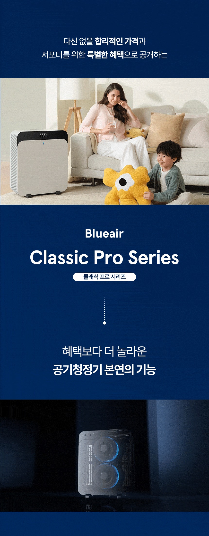 새롭게 선보이는 블루에어 클래식 프로 시리즈는 가장 진보된 공기청정기입니다.