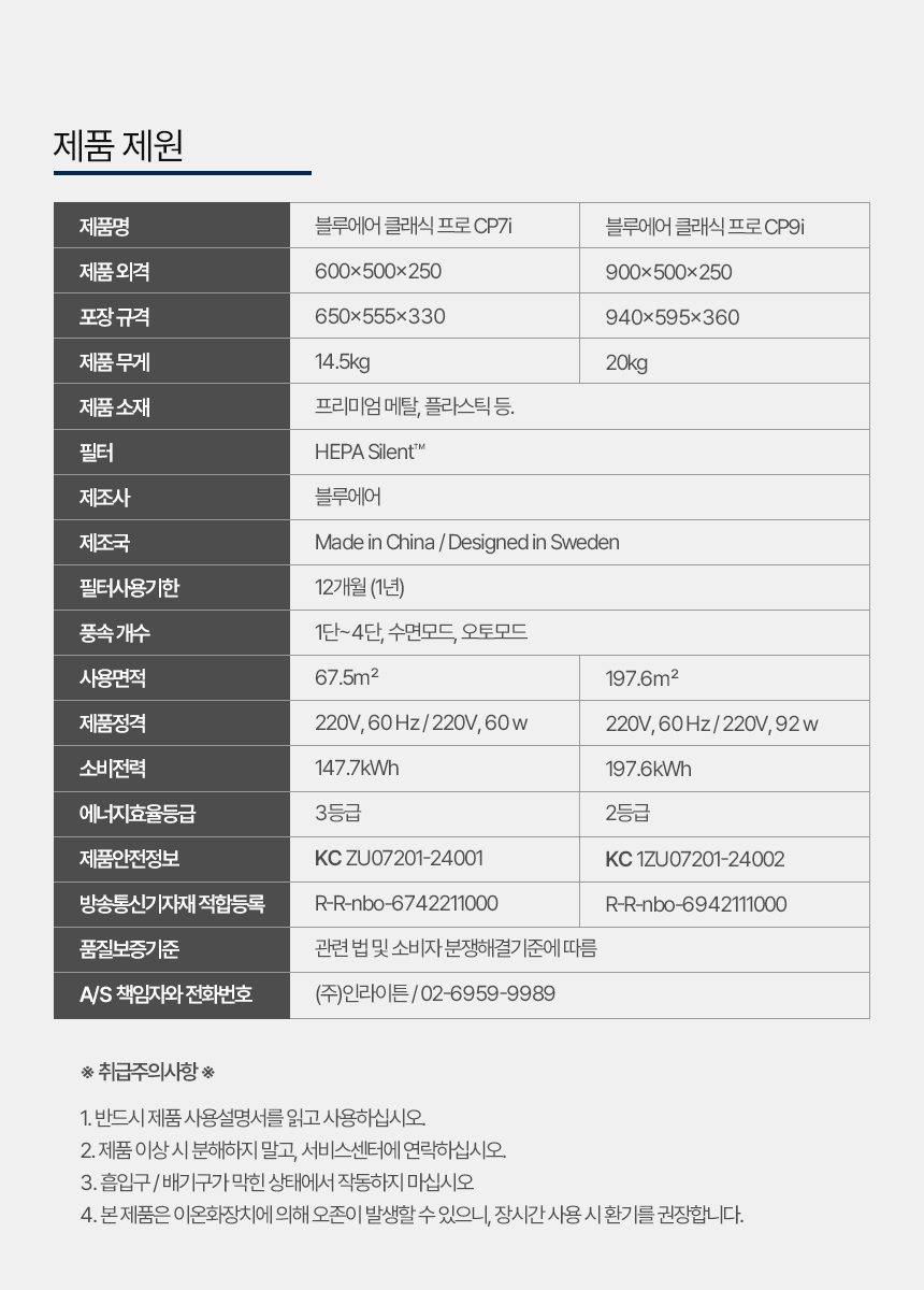 - 클래식 프로 공기청정기는 실내 전용 가전제품입니다.